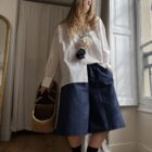 Bermuda « ÉTIENNE » en jean brut. Taille froncée sur élastique, poches latérales. Une coupe minimaliste.