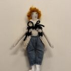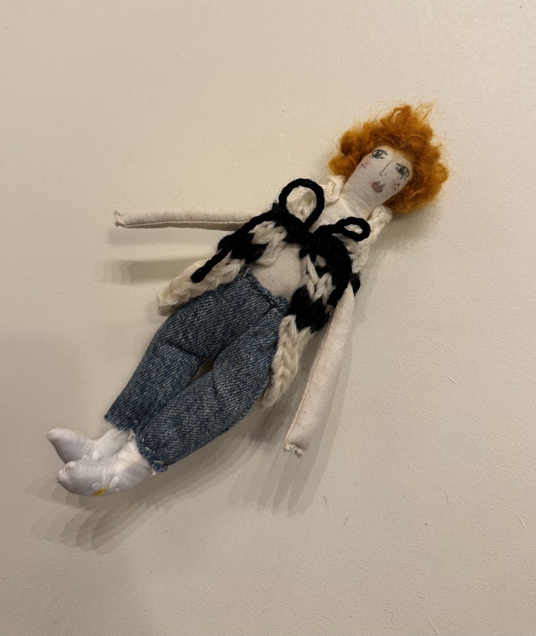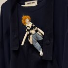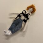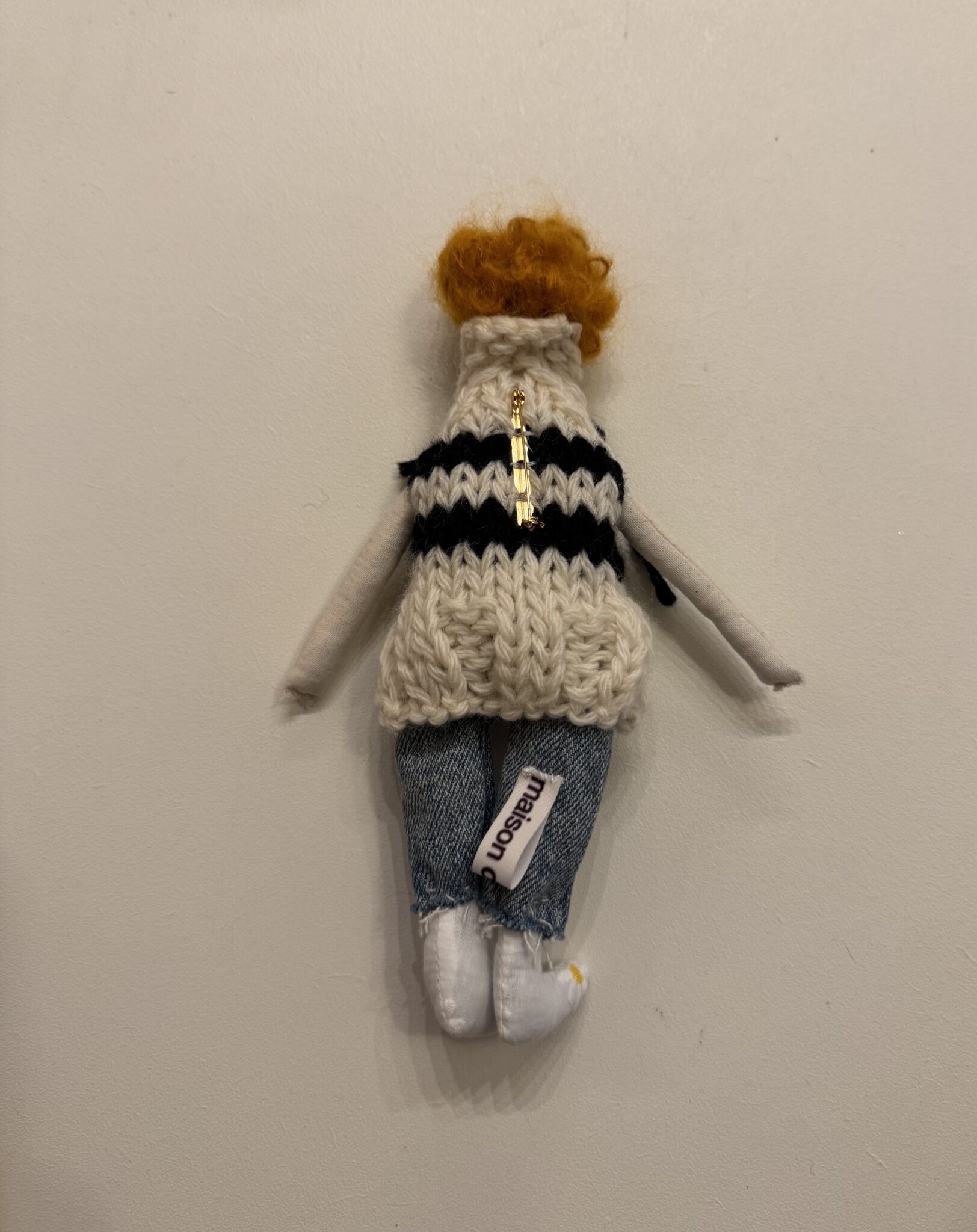Broche « Mademoiselle DJU » tricotée et brodée main. Une pièce unique et poétique tel un bijoux.