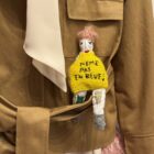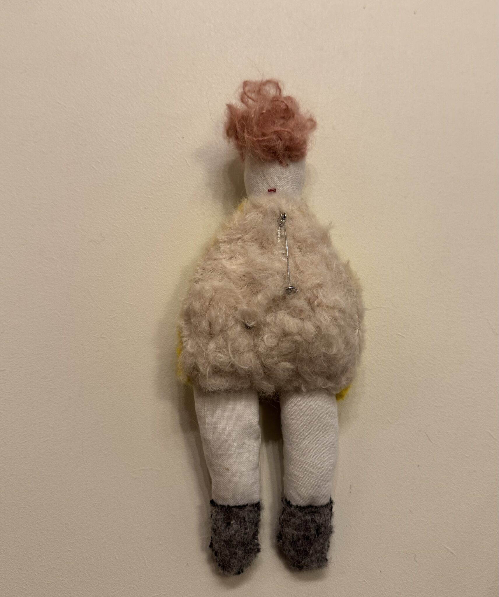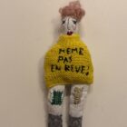 Broche « Mademoiselle DJU » tricotée et brodée main. Une pièce unique et poétique tel un bijoux.