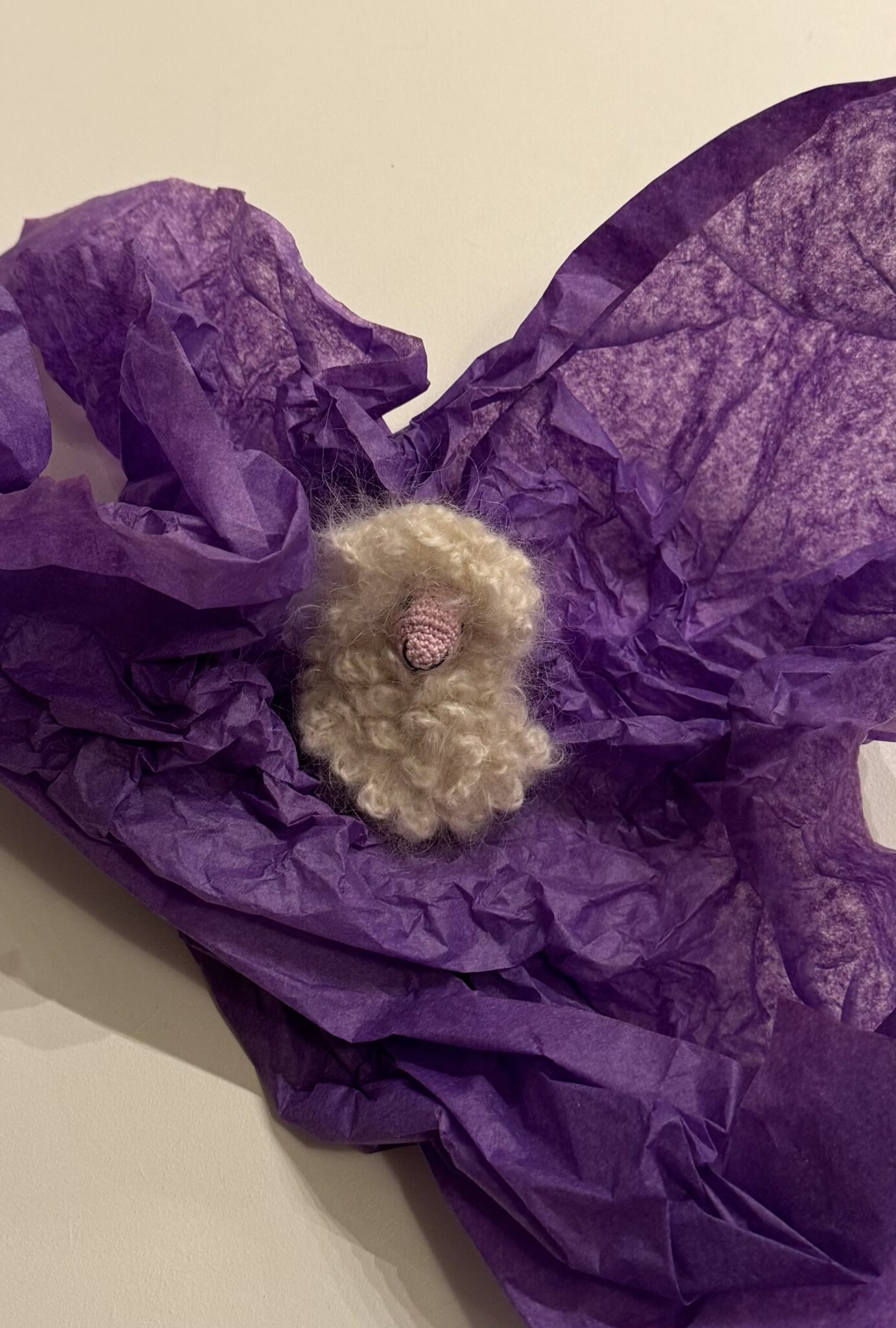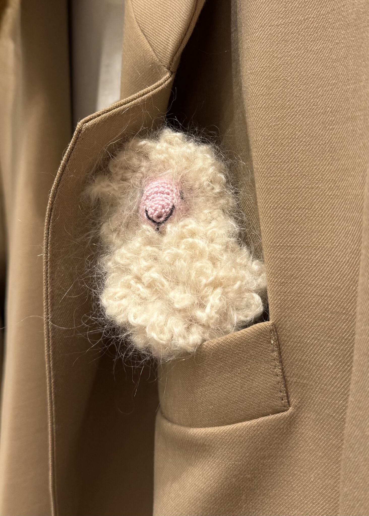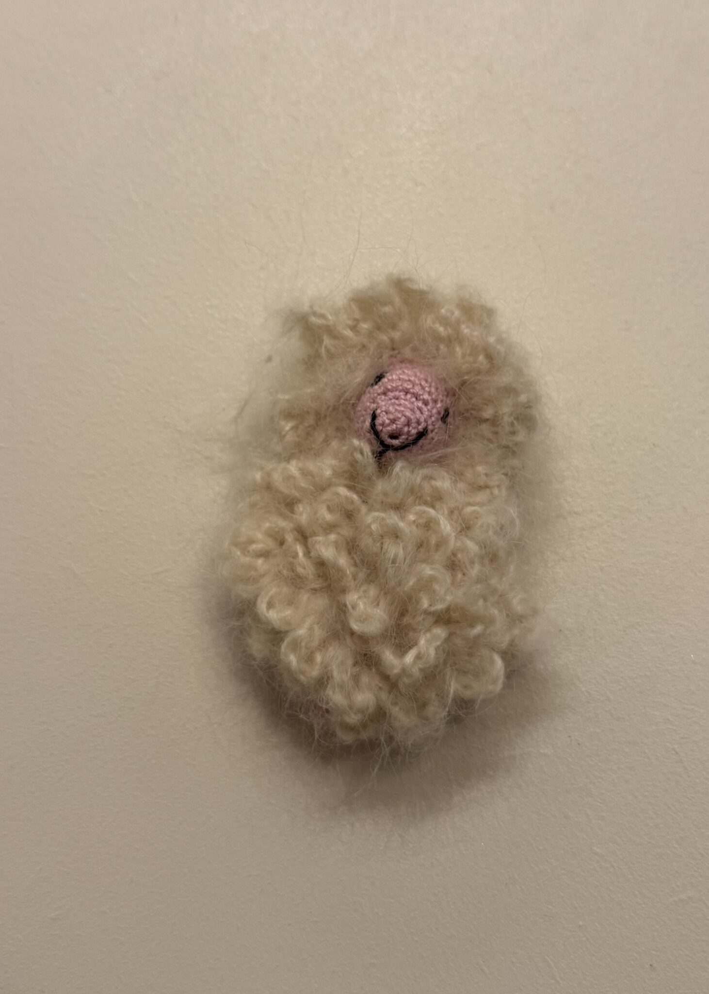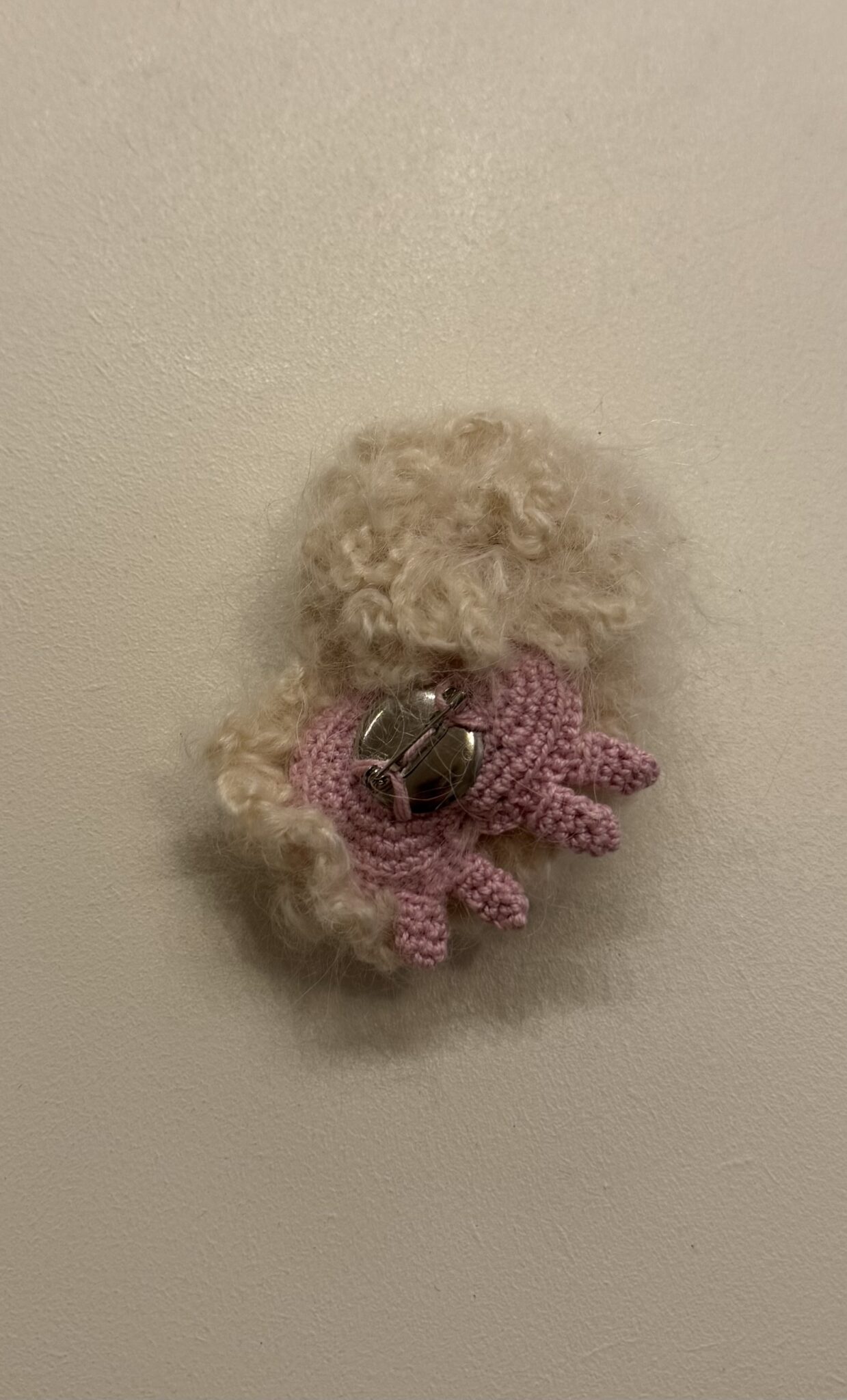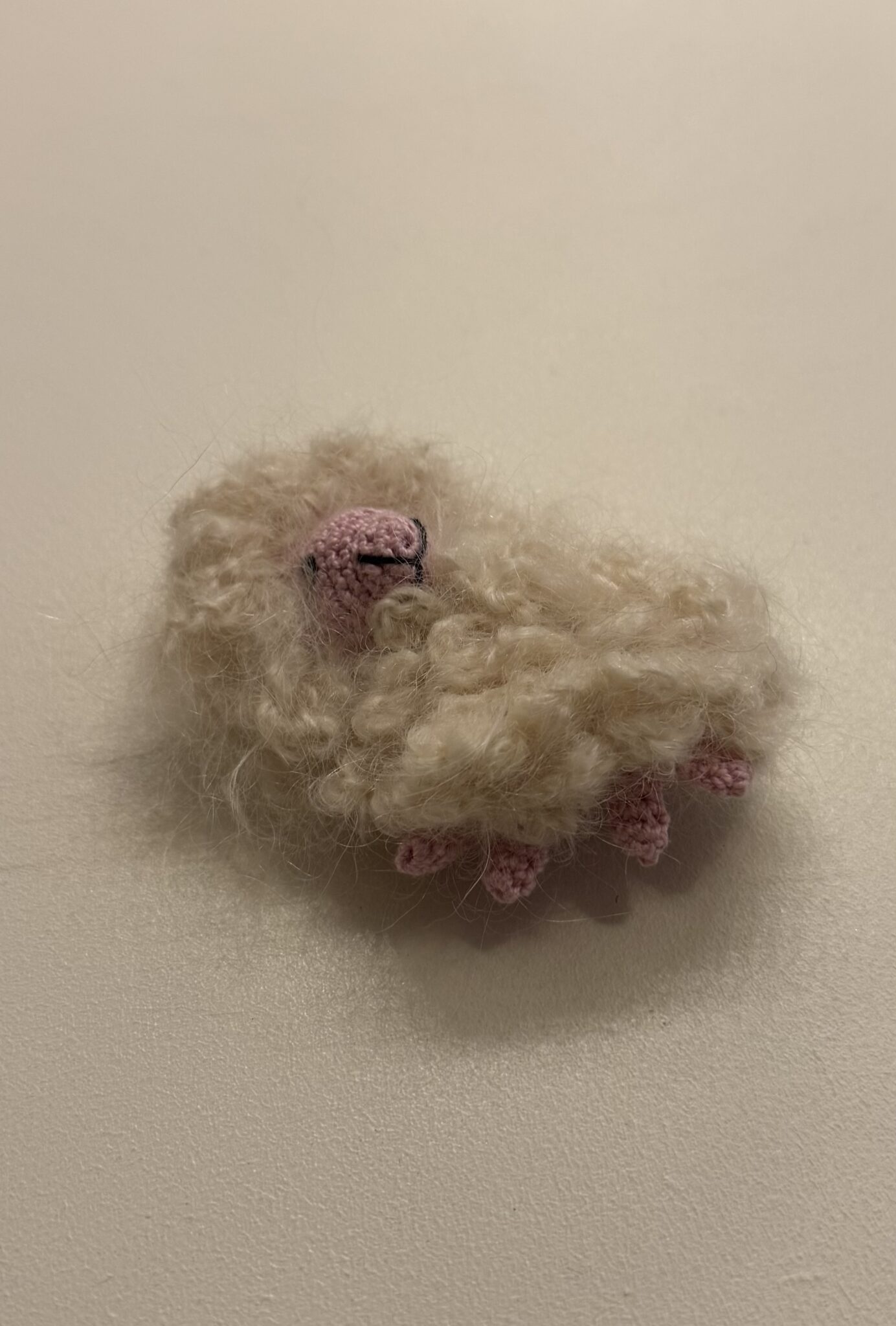 Broche mouton crochetée main en kid mohair et coton. Une pièce unique et poétique.Â