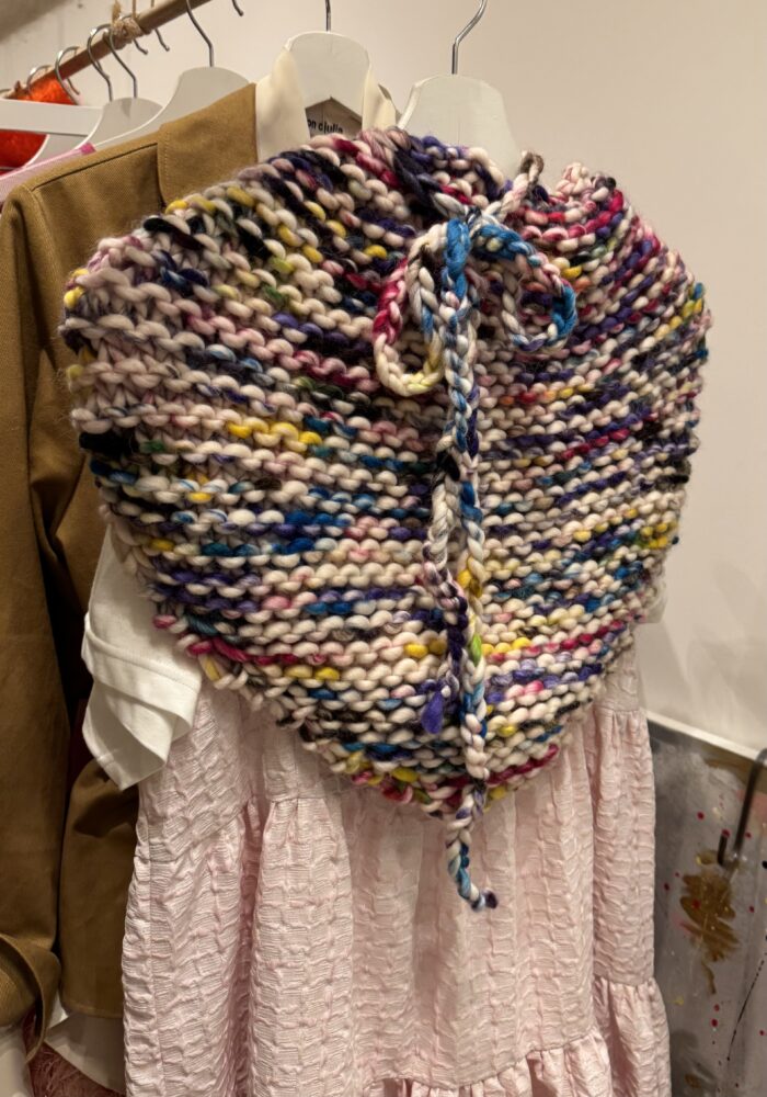 Châle tricoté main en laine peinte. PIÈCE UNIQUE