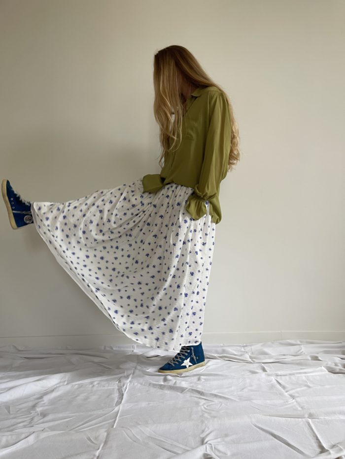 Chemisier « GEORGETTE » en crêpe de soie Georgette. Col, boutons en nacre, poignets à smocks avec petit volant. Fente sur les côtés en bas de chemisier. Une coupe minimaliste pour un chemisier élégant. PIÈCE UNIQUE