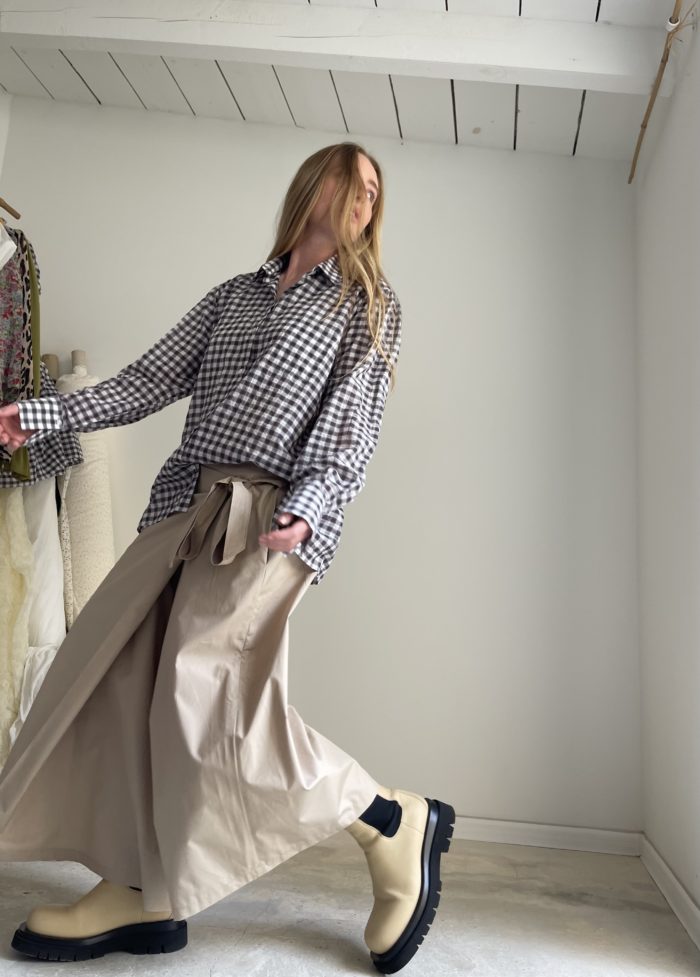 Chemisier « LUCIE » en coton carreaux vichy, manches 3/4, boutons, petites fronces dans le dos, poche. Une coupe minimaliste et élégante. Petite édition.