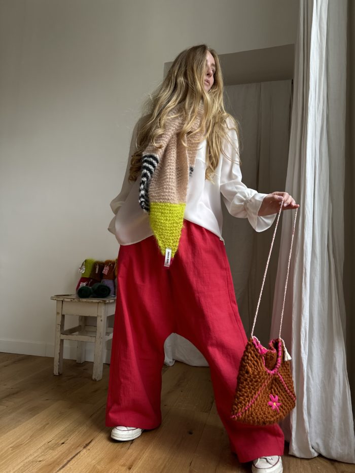 Écharpe tricotée main en kid mohair. PIÈCE UNIQUE