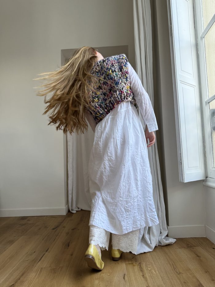 Gilet tricoté main en laine peinte. Gilet réversible. PIÈCE UNIQUE