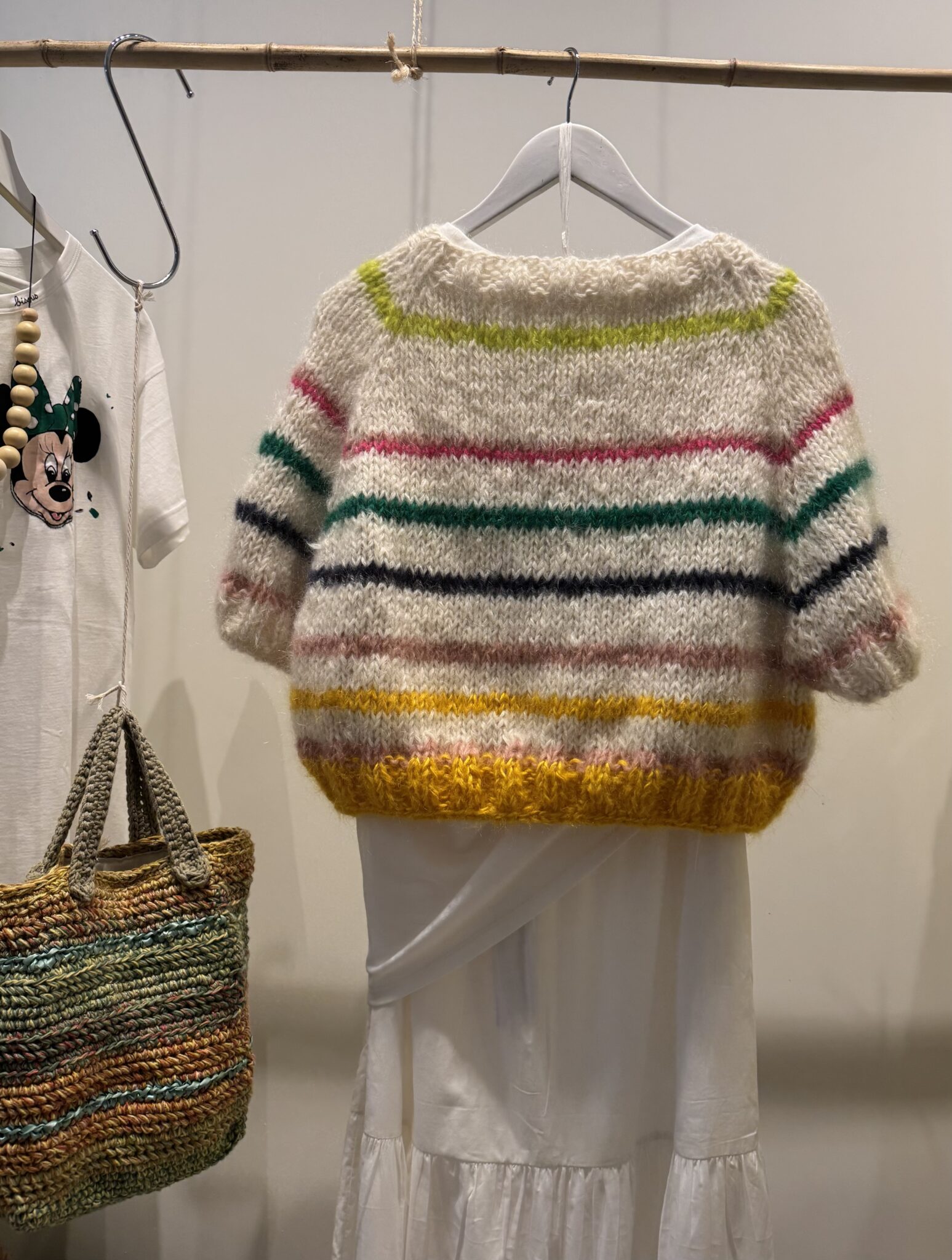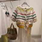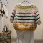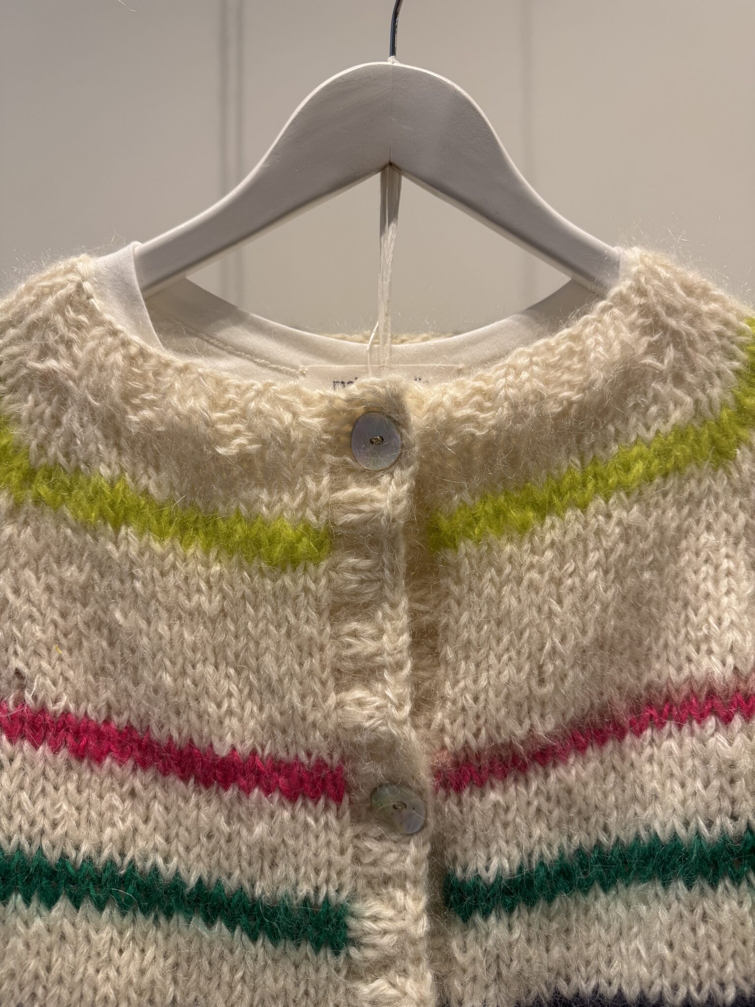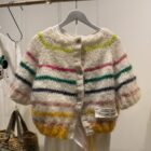 Gilet tricoté main en kid mohair. Boutons en nacre. Manches 3/4.