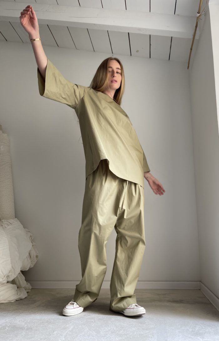 Haut dans une superbe toile parachute kaki, une coupe minimaliste et élégante. PIÈCE UNIQUE