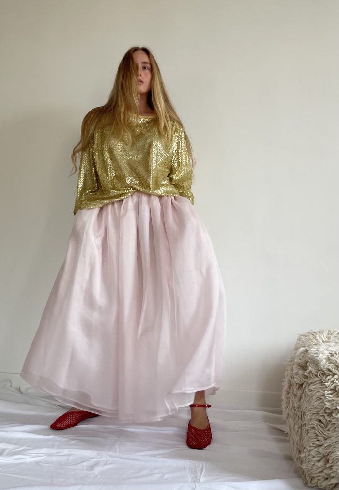 Jupe « AMBRE » dans un magnifique organza de soie misty rose. Taille sur élastique, fronces, poches. Double épaisseur de tissu et doublure en coton et soie. Une jupe élégante, minimaliste et intemporelle. PIÈCE UNIQUE