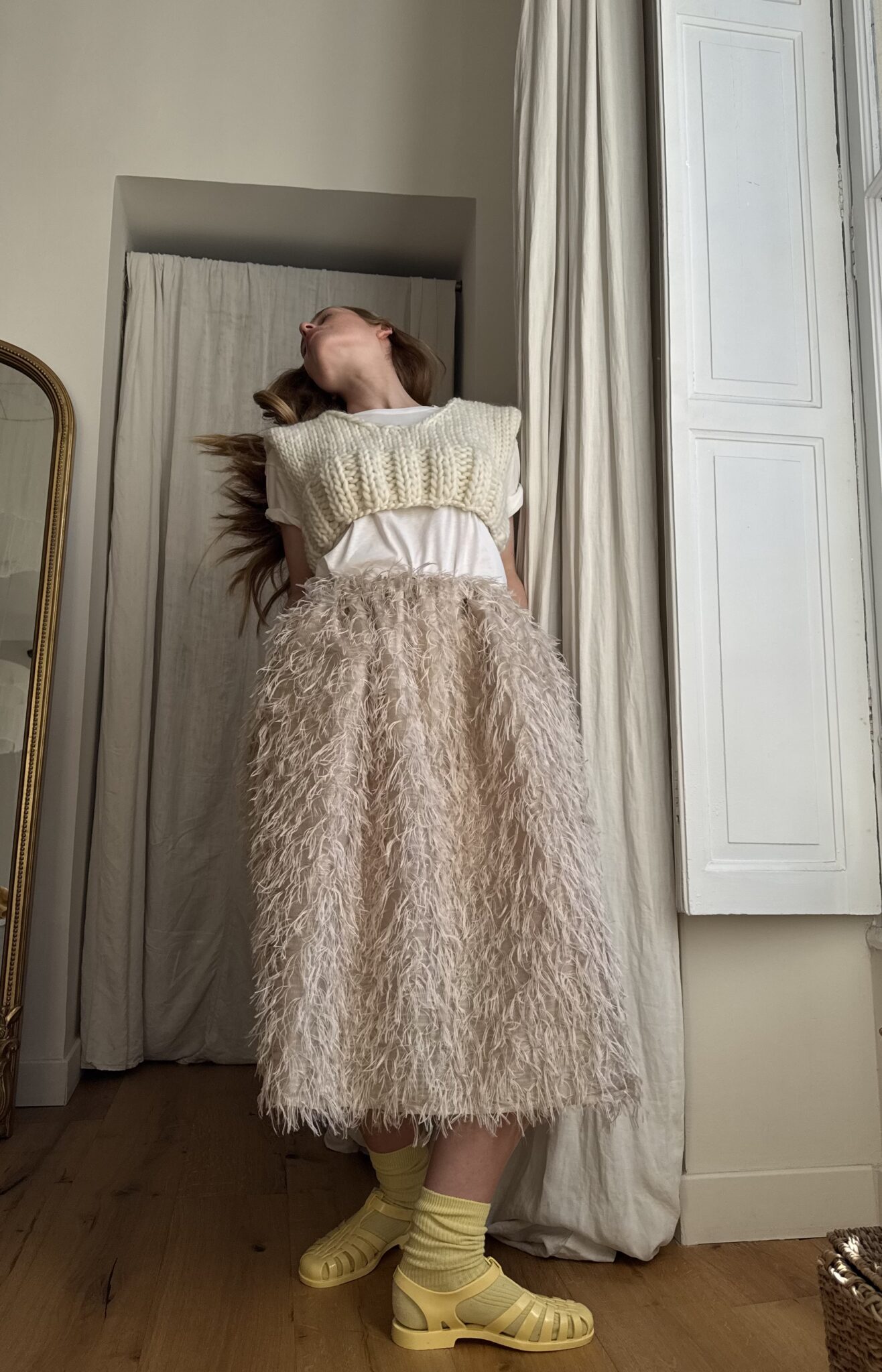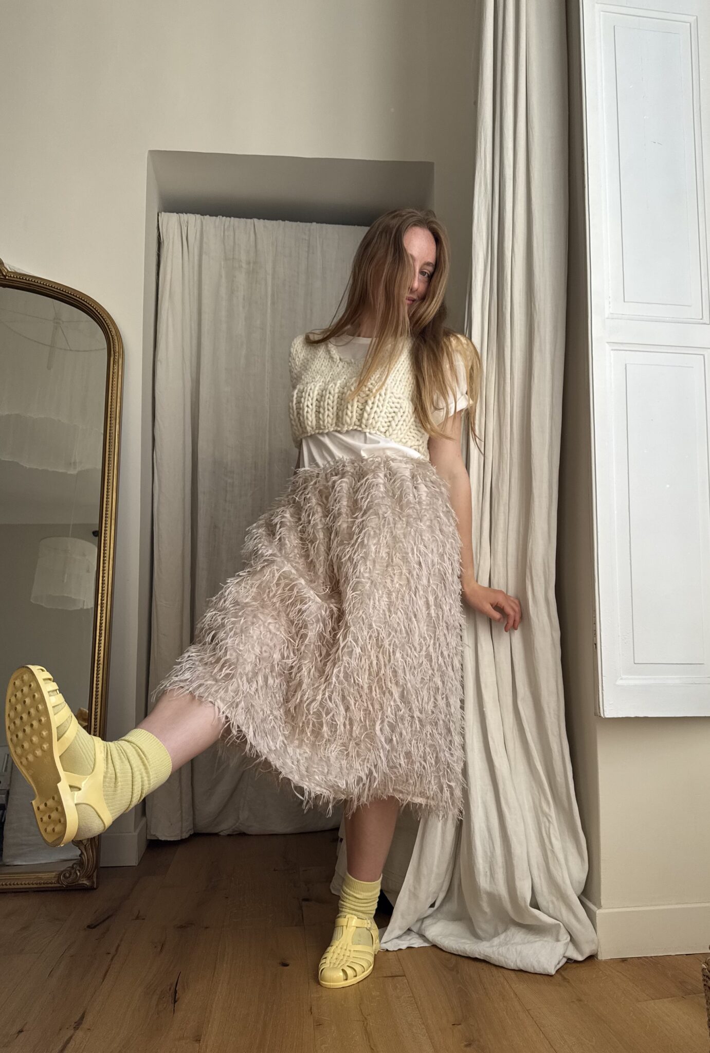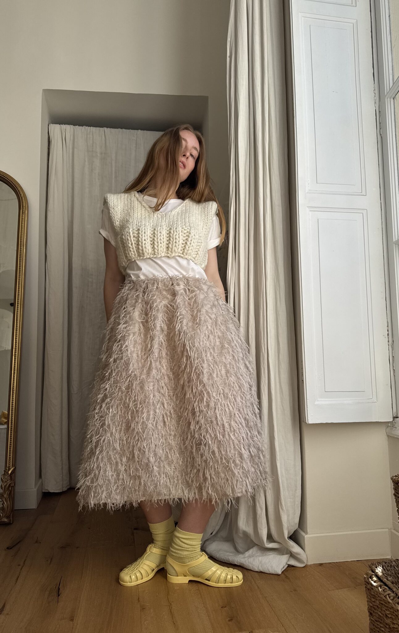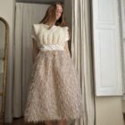 Jupe « JANE » dans un sublime tissu biscuit, taille sur élastique, fronces à la taille, poches latérales, longueur jupe « midi ». Une jupe élégante, minimaliste et poétique.