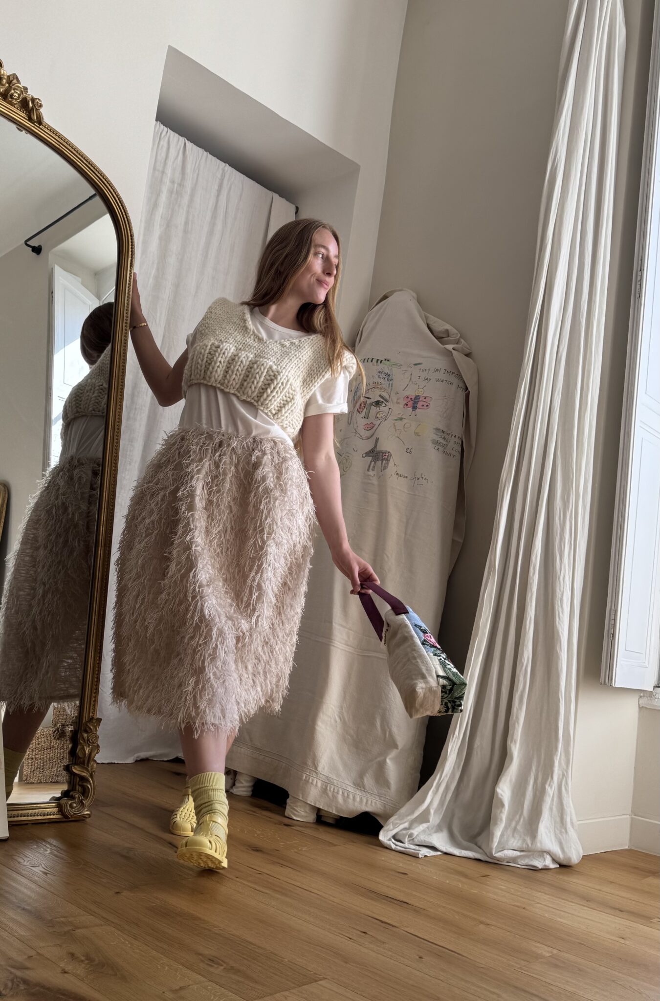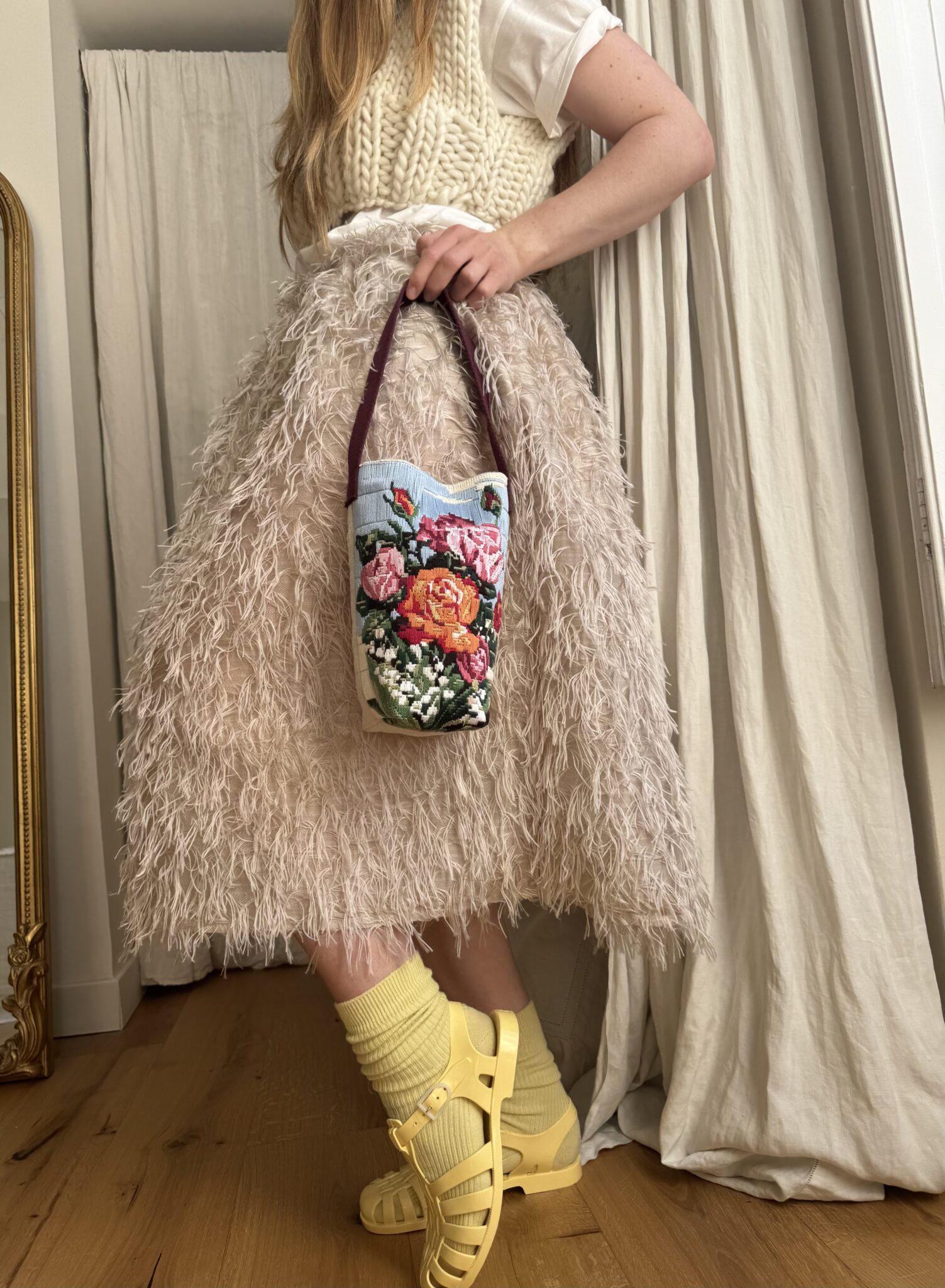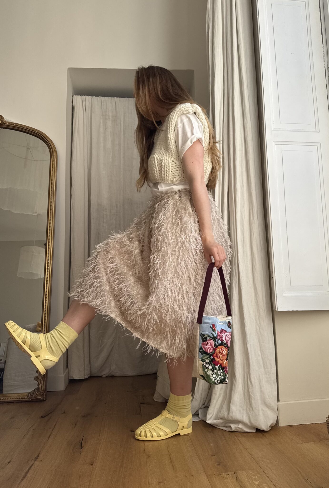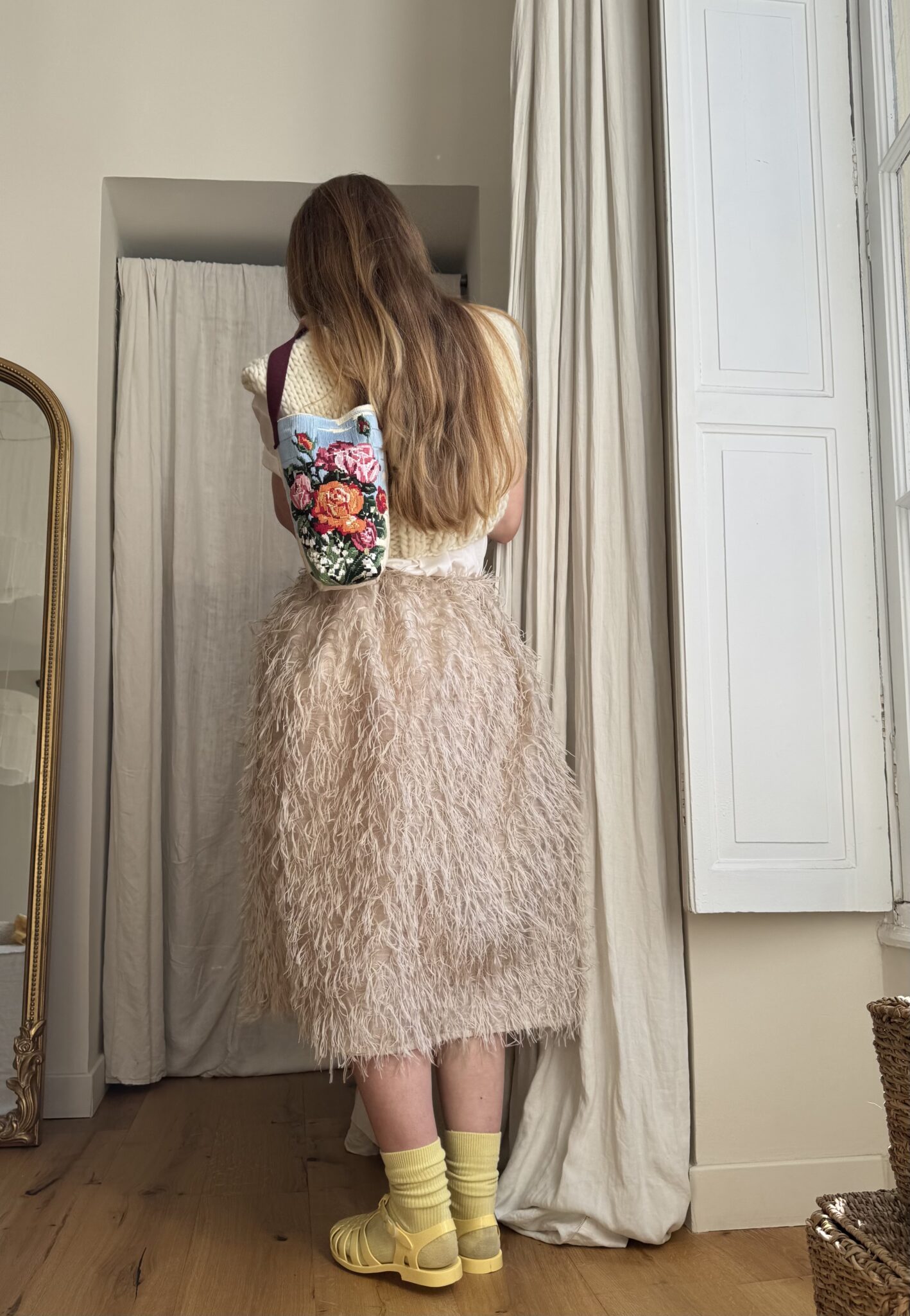 Jupe « JANE » dans un sublime tissu biscuit, taille sur élastique, fronces à la taille, poches latérales, longueur jupe « midi ». Une jupe élégante, minimaliste et poétique.