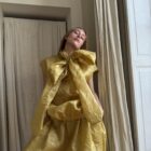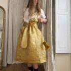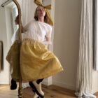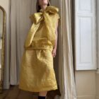 Jupe « JANE » dans une sublime faille de soie froissée ocre, taille sur élastique, fronces à la taille, poches latérales, longueur jupe « midi ». Une jupe élégante, minimaliste et poétique. Jupe vendue avec le noeud ; à porter à la taille, autour du cou, dans les cheveux …