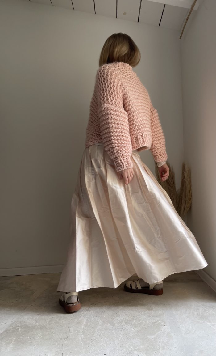 Jupe longue en soie shantung rose pâle, taille sur élastique, plis plats, poches. Une jupe élégante et intemporelle. Une soie sauvage de grande qualité. PIÈCE UNIQUE