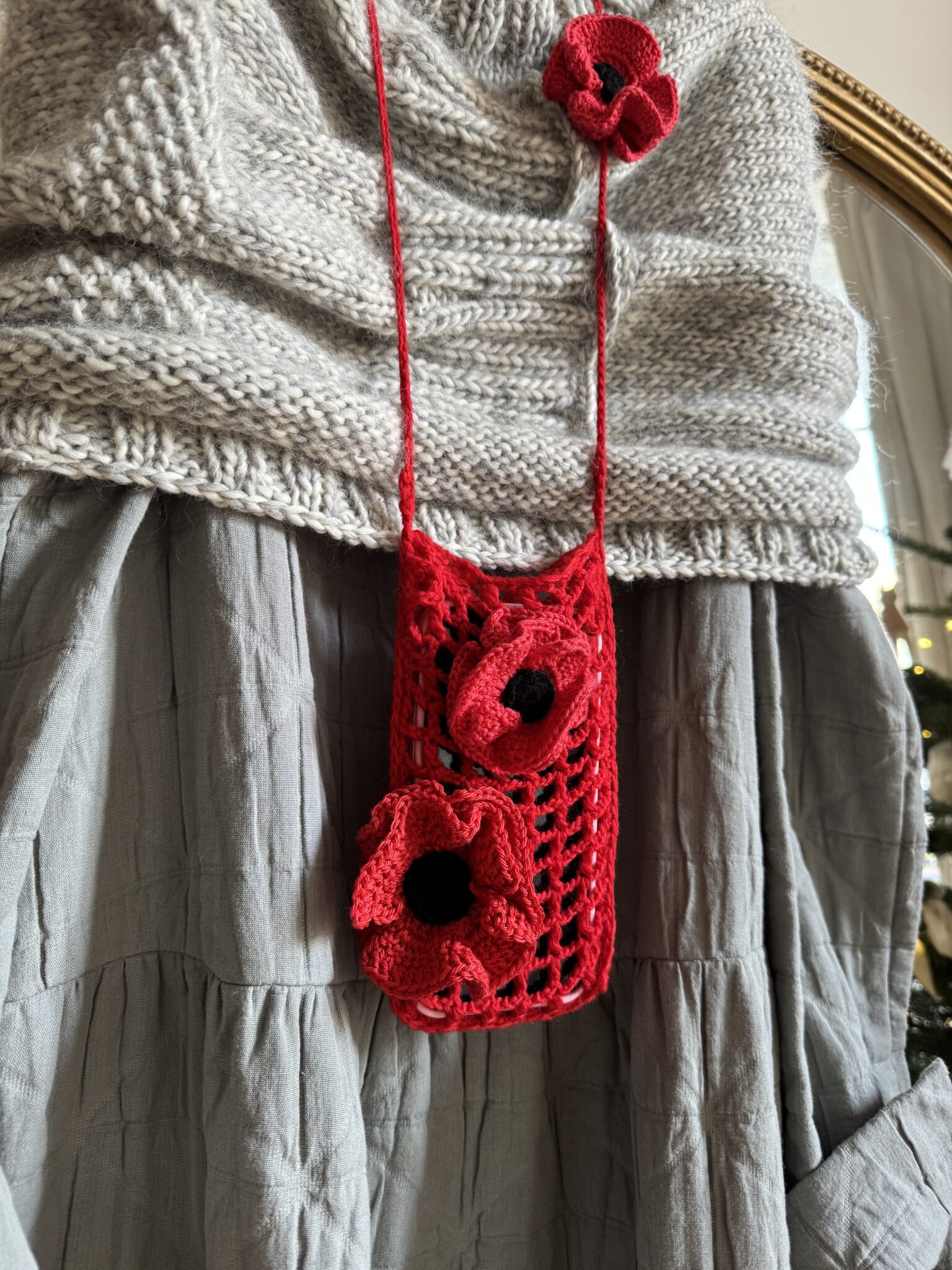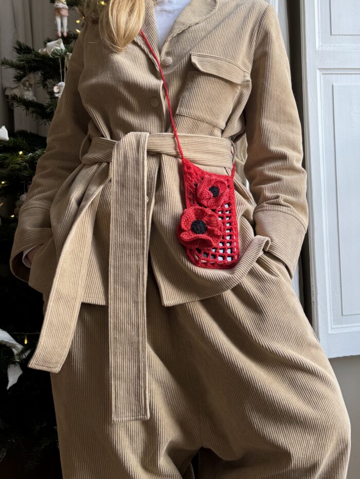 Mini sac bandoulière crocheté main en laine, coquelicots crochetés main en coton. Une pièce unique poétique.Â