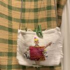 Mini sac brodé main. Fine bandoulière, fond de sac en coton, lien de serrage. Mini sac poétique.