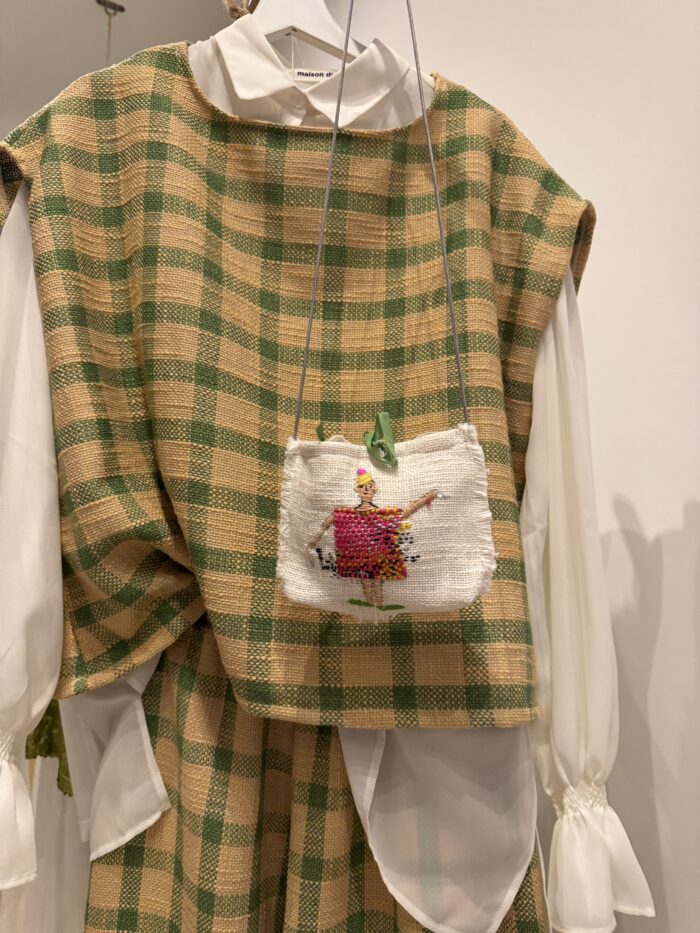 Mini sac brodé main. Fine bandoulière, fond de sac en coton, lien de serrage. Mini sac poétique.