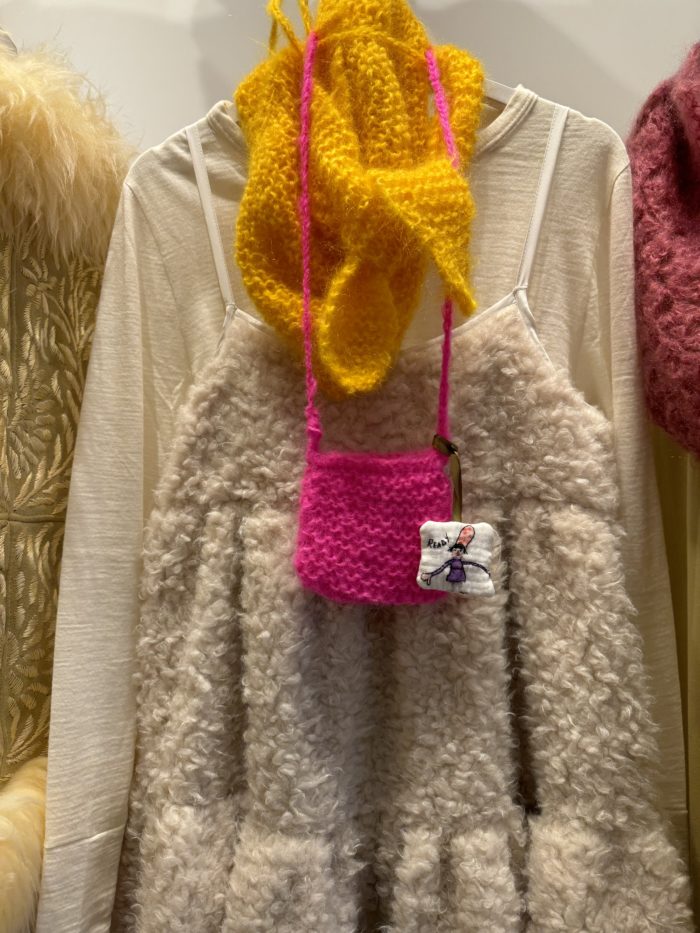 Mini sac au crochet, en kid mohair rose, fait main, fond de sac en toile à beurre écru, fermeture pression. PIÈCE UNIQUE