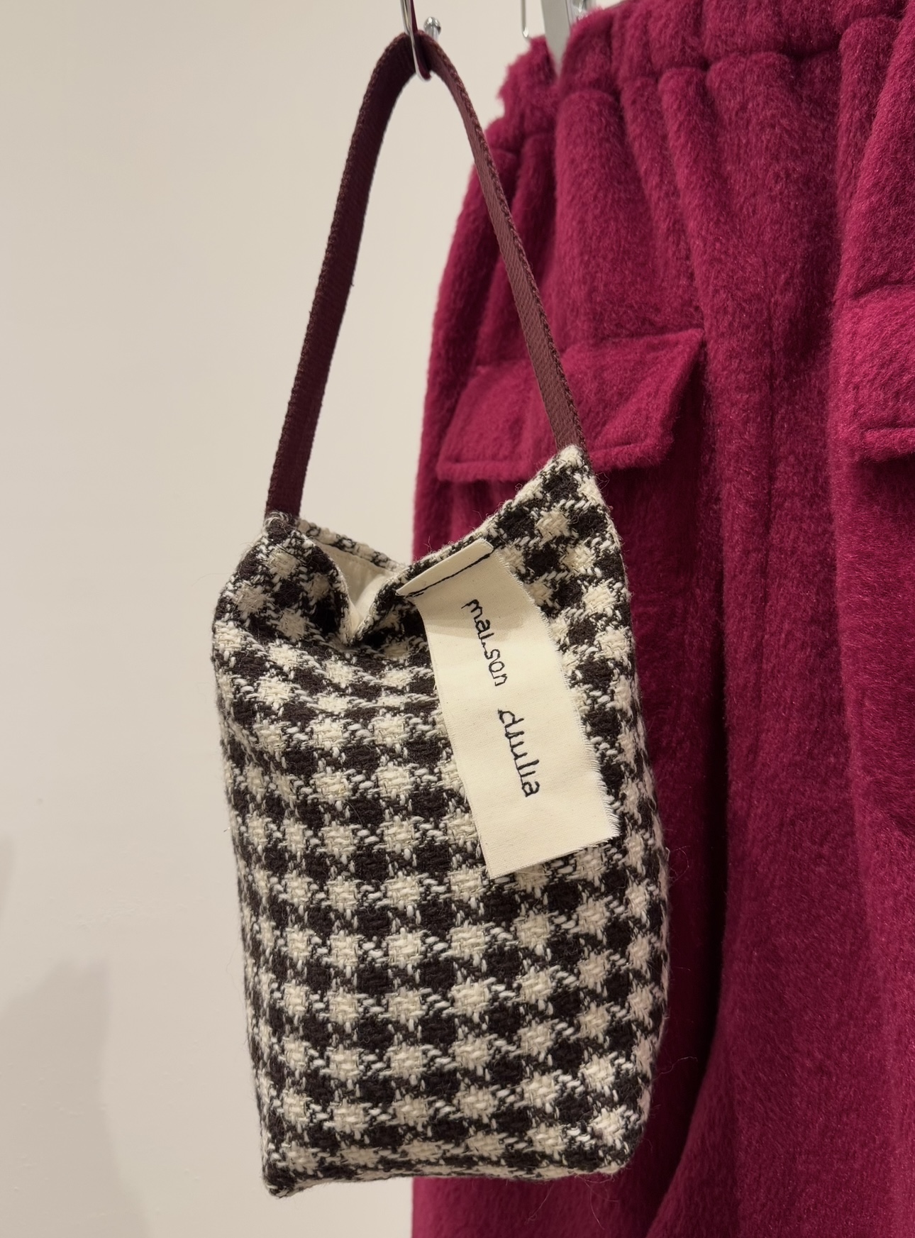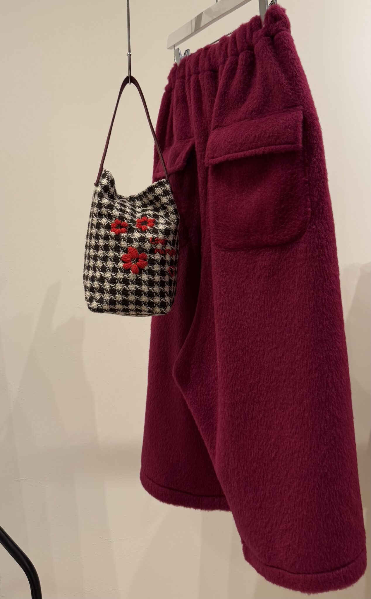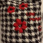 Mini tote bag en tweed brodé main. Broderies « Love matters ». Mono anse, fond de sac en coton écru. Mini tote bag poétique. PIÈCE UNIQUE