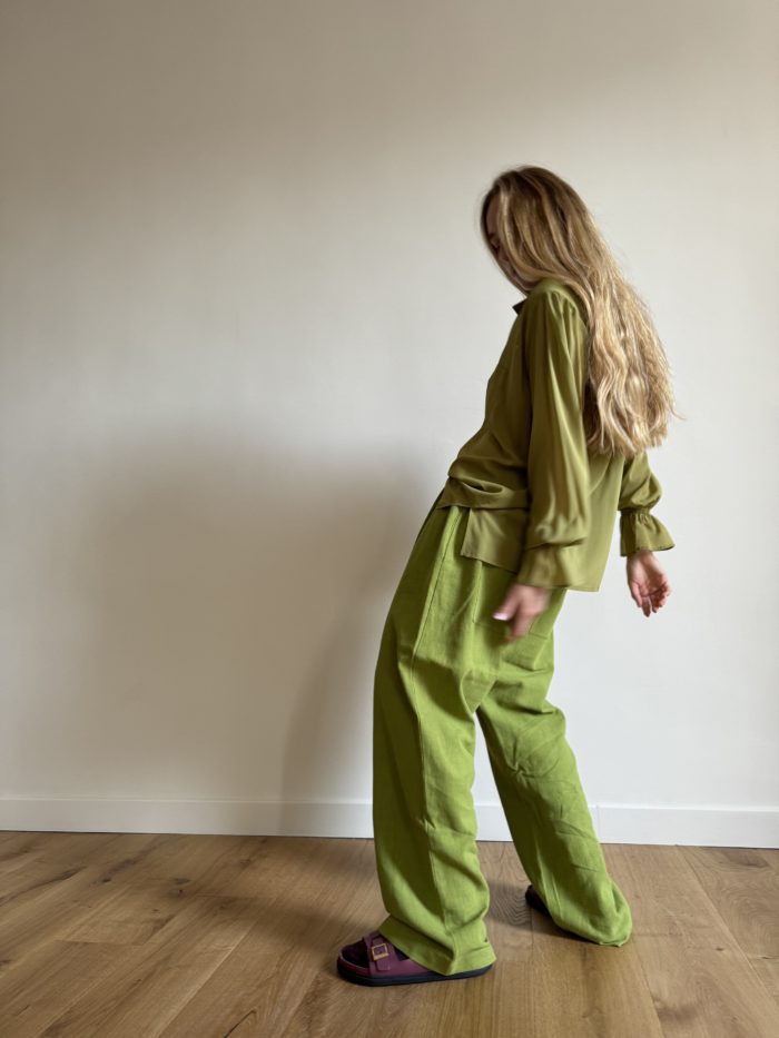 Pantalon « JO » dans un sublime lin 250 GR couleur vert tilleul. Un lin d’une grande qualité avec un tombé et une tenue sans égal. Taille sur élastique, poches latérales et poches plaquées au dos. Une coupe loose et oversize, pour un pantalon stylé et unique. Petite édition.