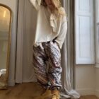 Pantalon « JO » dans un tissu matelassé métallisé à motifs. Taille sur élastique, poches latérales. Une coupe unisexe, loose et oversize, pour un pantalon unique.