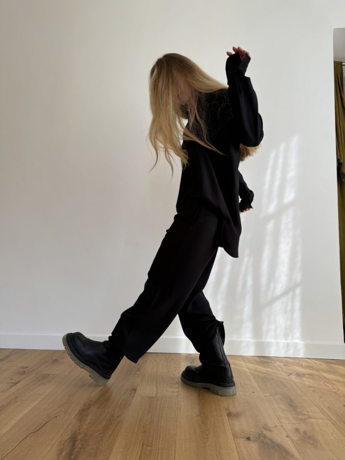 Pantalon « LENNY » en crêpe de viscose noir, poches latérales, taille sur élastique , coupe droite. Ourlet apparent. Le pantalon intemporel et indispensable à avoir dans son dressing. Élégant & confortable. Édition très limitées