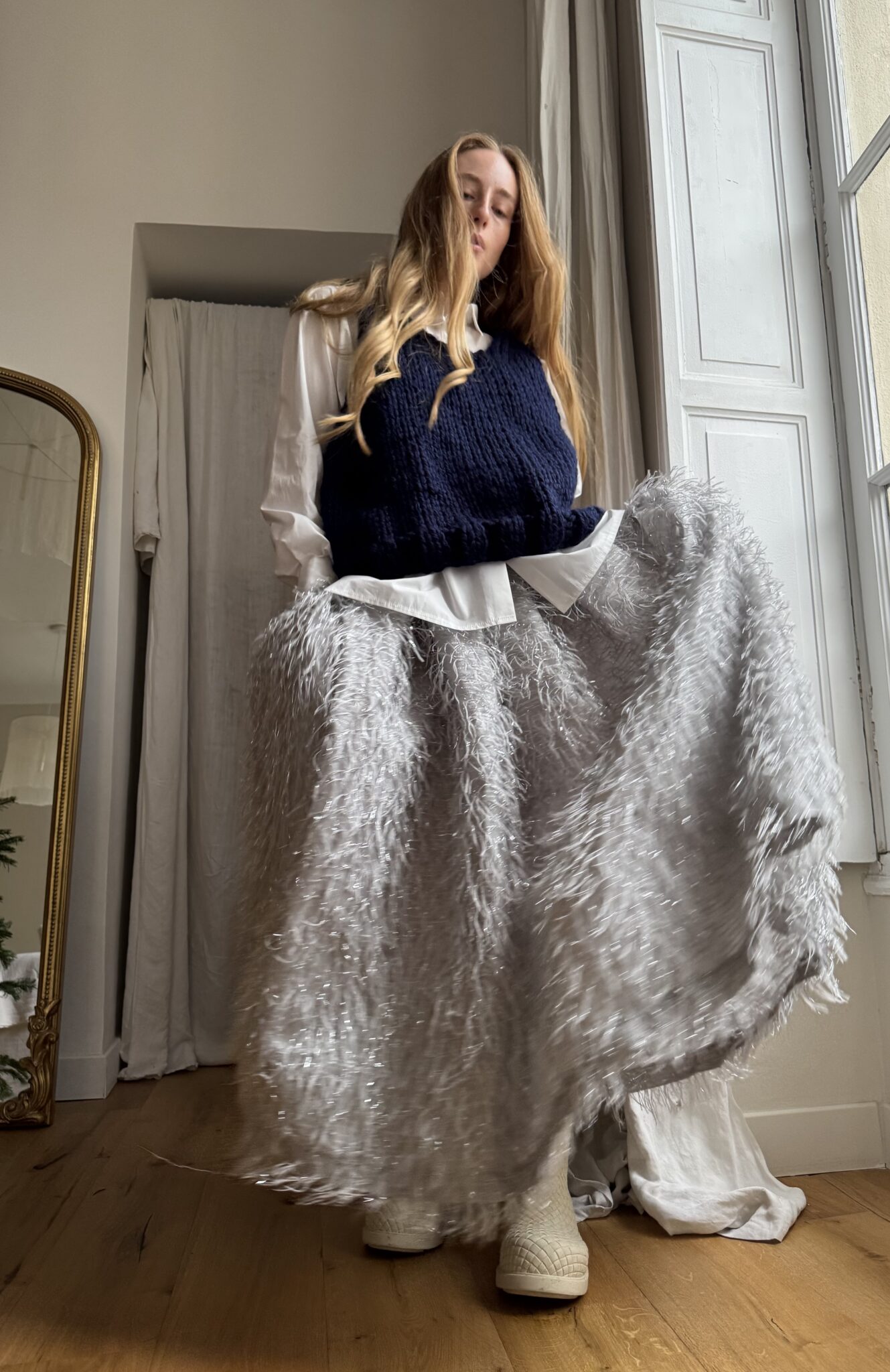 Conseils d’entretien : Nettoyage à sec conseillé ou lavage main délicat à l’eau froide. Essorer délicatement à la main pour ne pas détériorer les fibres. Séchage à plat sur une serviette propre