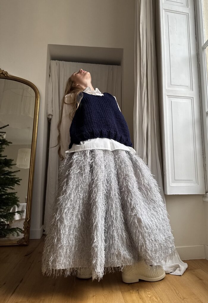 Pull débardeur « MILO » tricoté main en laine bleu nuit. Coupe minimaliste, sans manches. PIÈCE UNIQUE