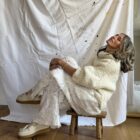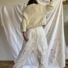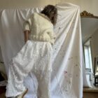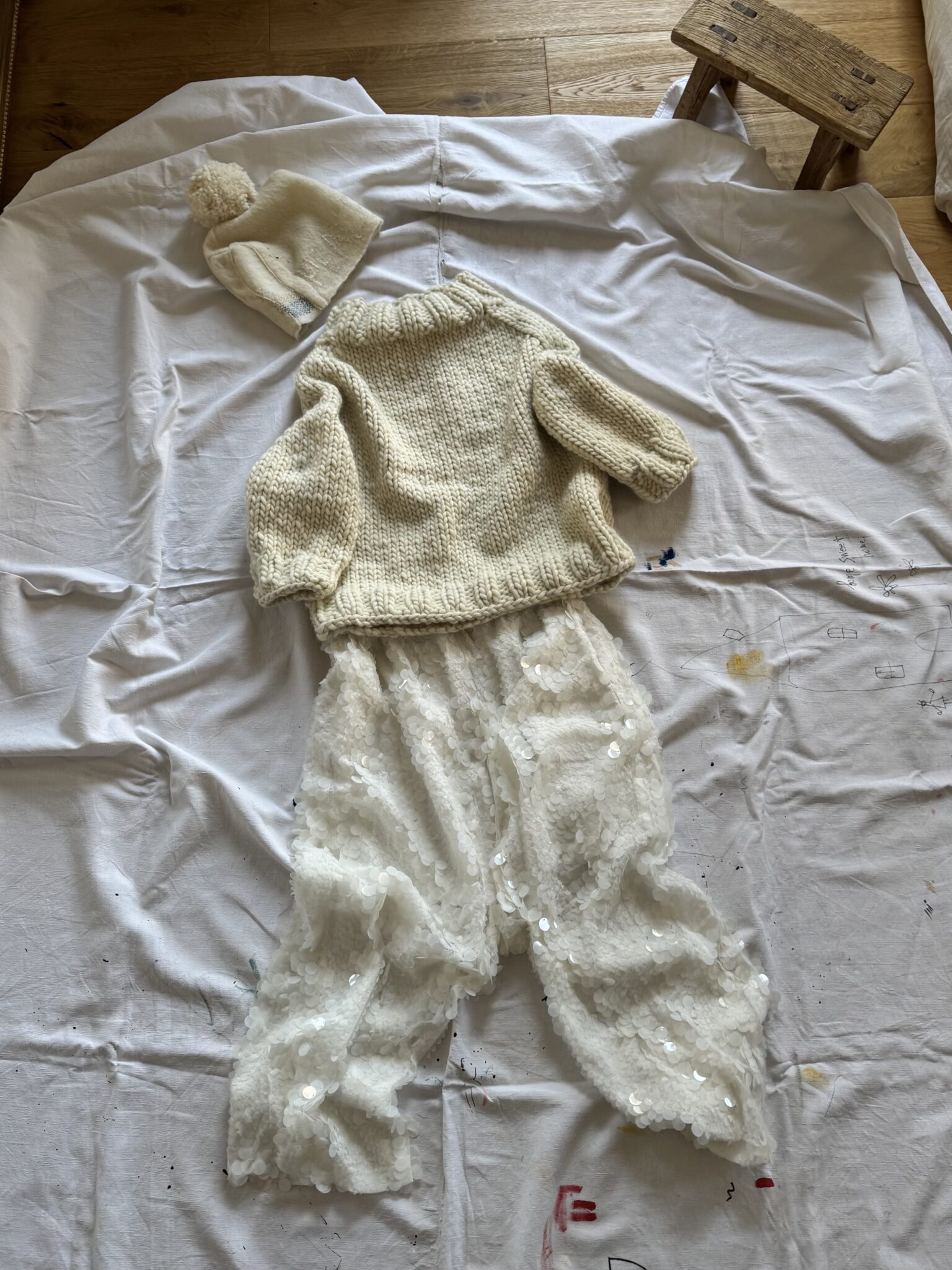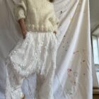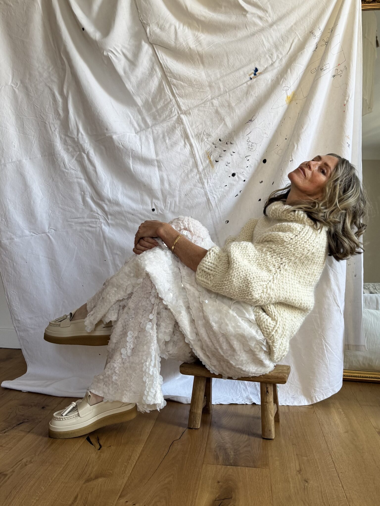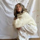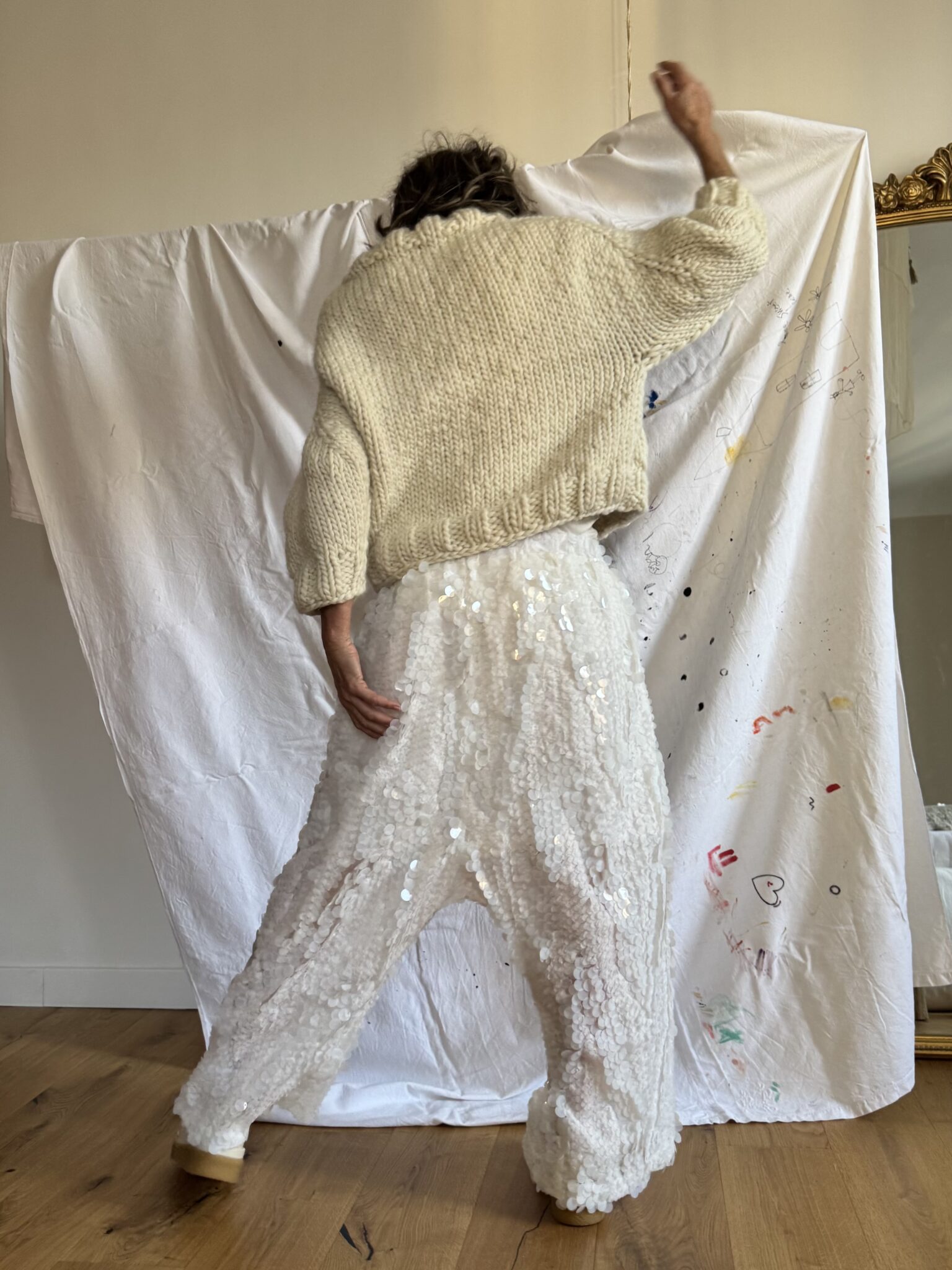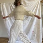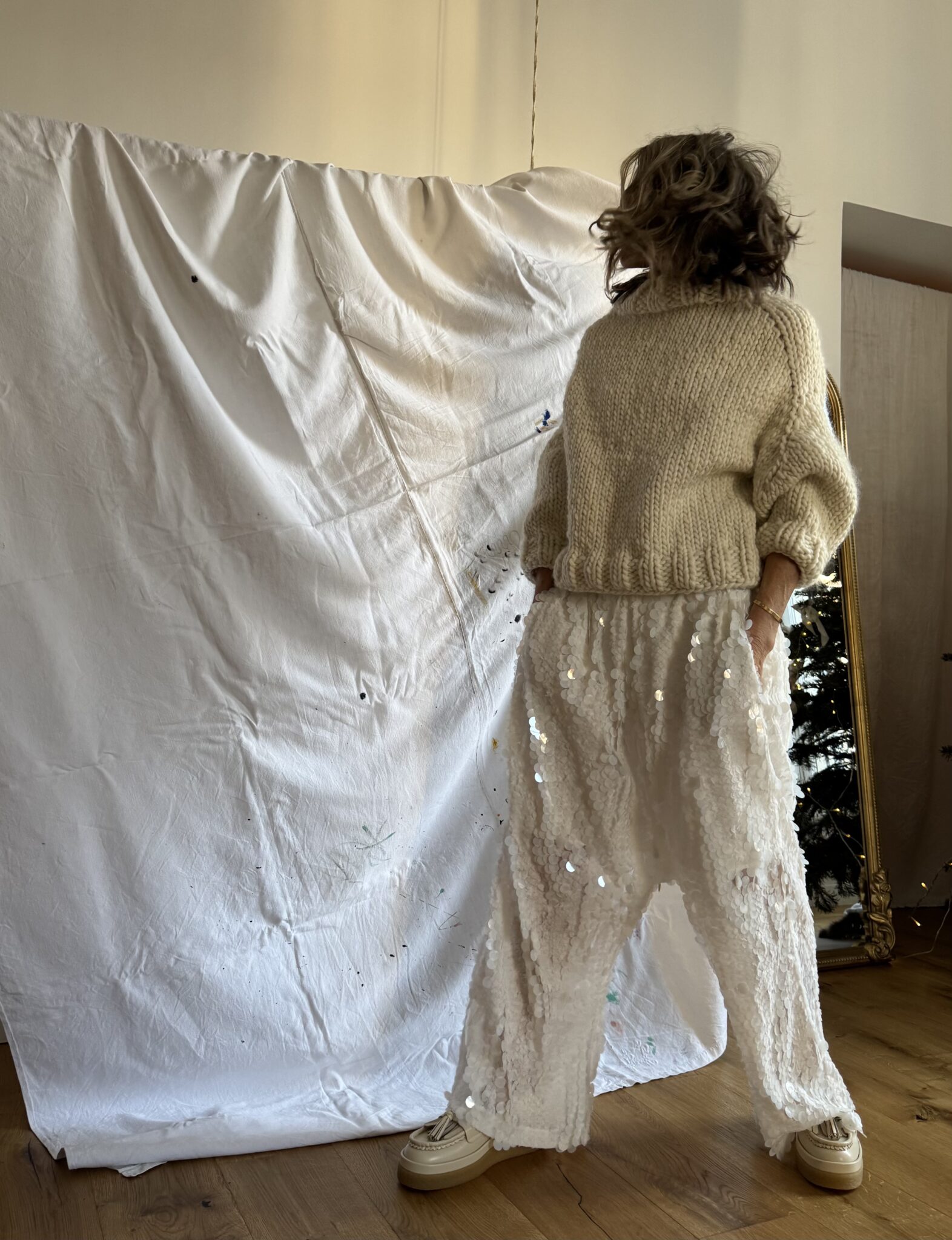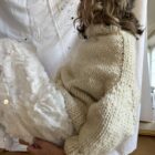 Pull tricoté main en 100% laine. Création unique. Col montant, poignets resserrés. PIÈCE UNIQUE.
