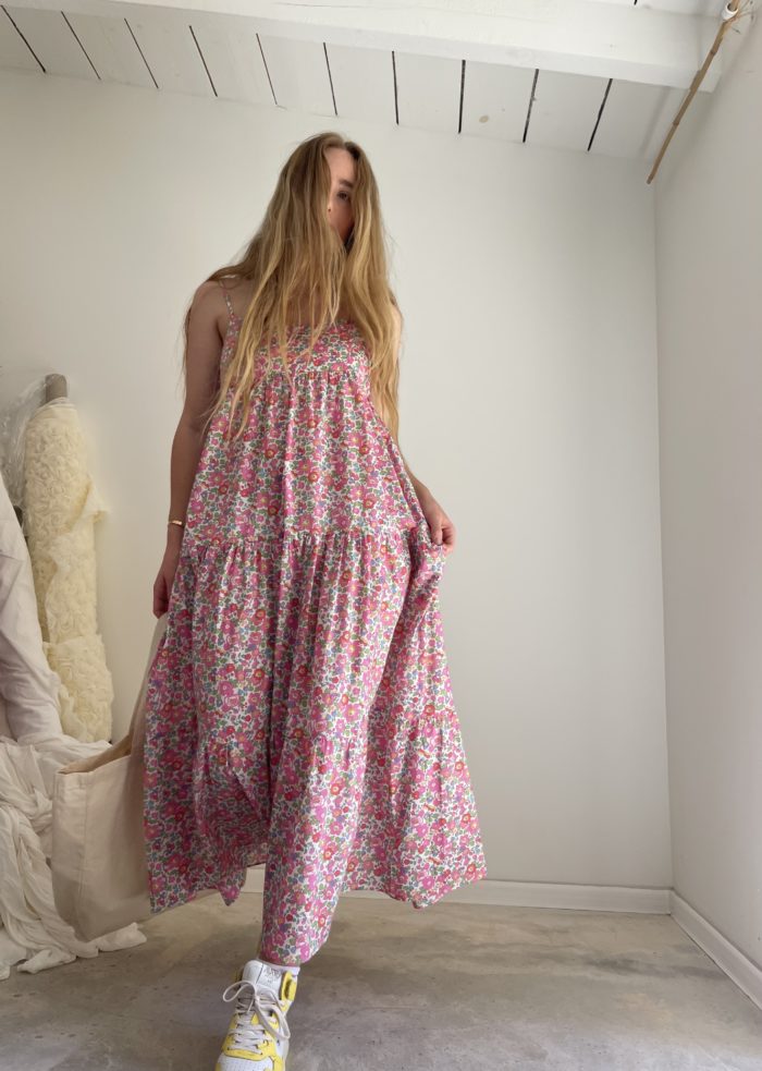 Robe « ISMINI » dans un magnifique coton Liberty of London. Bustier de la robe sur élastique, fines bretelles, poches. Une robe élégante. PIÈCE UNIQUE
