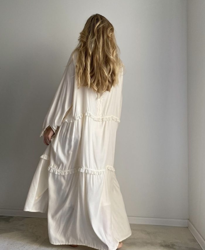 Robe « JOSÉPHINE » en crêpe de viscose écru. Robe élégante, au tombé fluide. PIÈCE UNIQUE