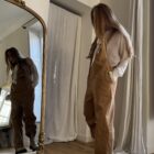 Salopette « LOUISON » en gabardine de coton calé, poches latérales & poches arrières, bretelles réglables. Une coupe japonisante et minimaliste. PIÈCE UNIQUE