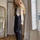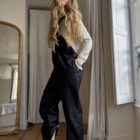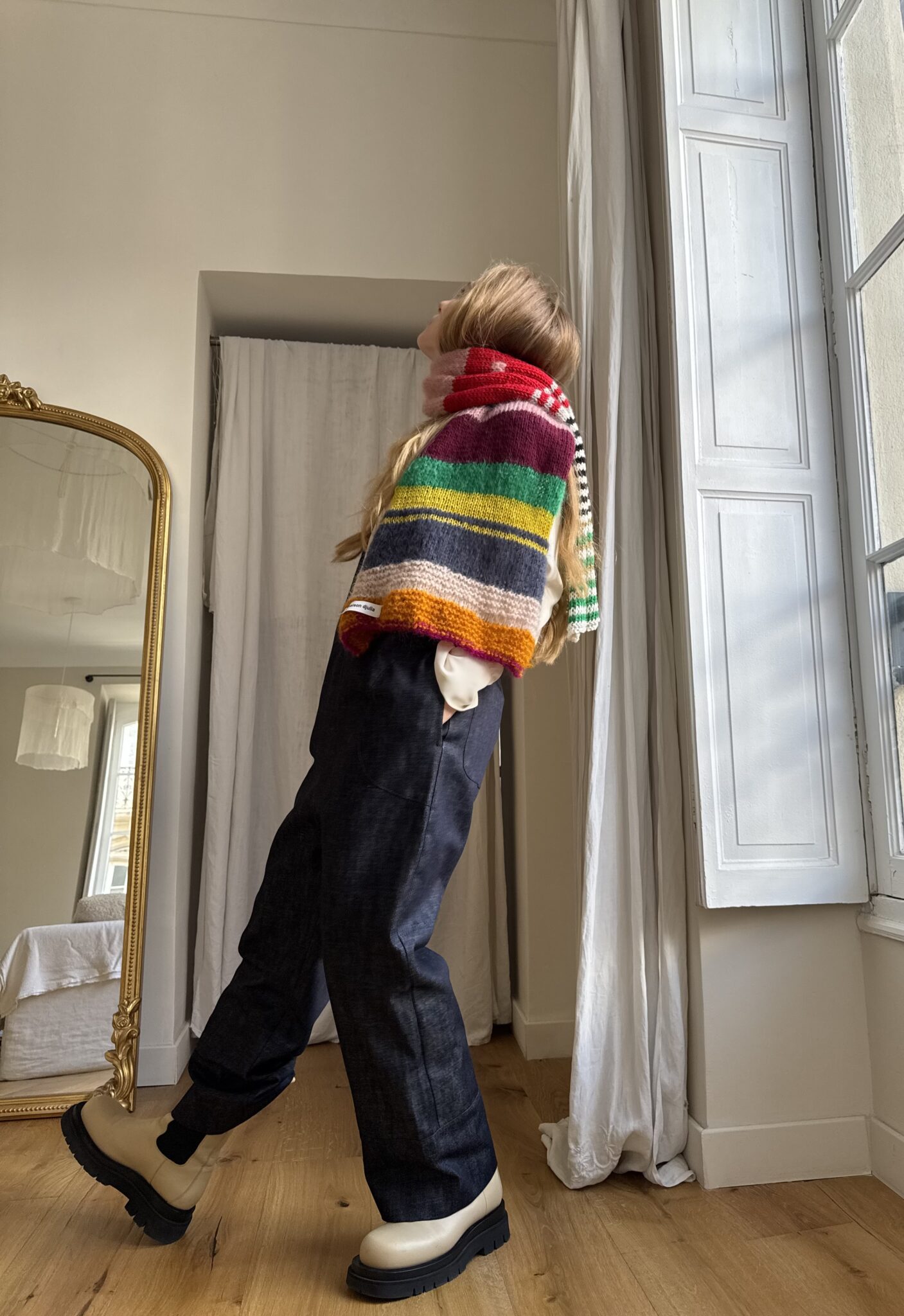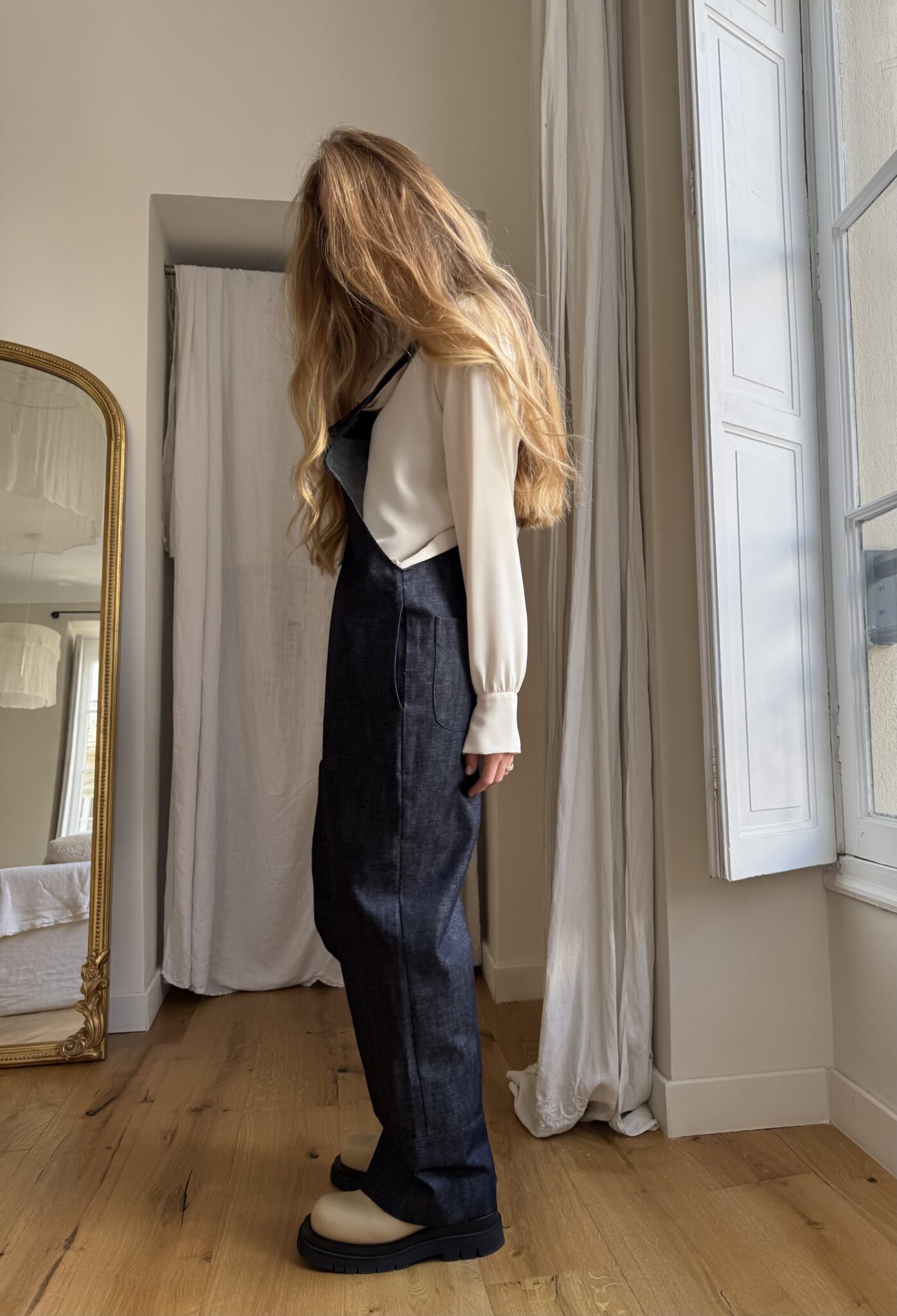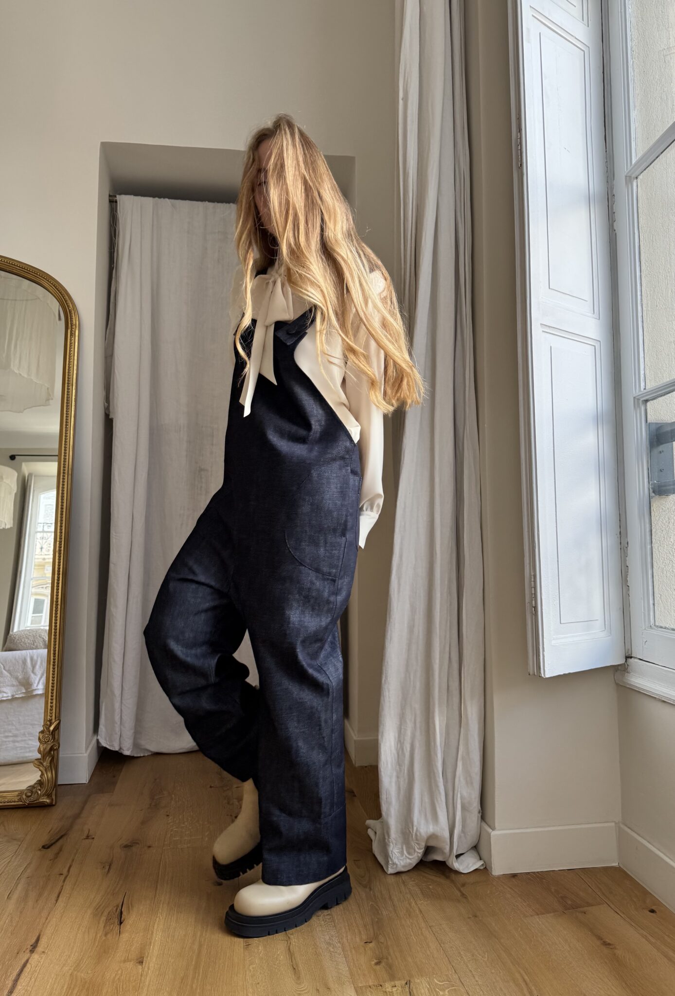 Salopette « LOUISON » en jean brut, poches latérales & poches arrières, bretelles réglables. Une coupe japonisante et minimaliste. PIÈCE UNIQUE