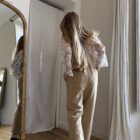 Le mannequin mesure 1m70, fait une taille 38 et porte une taille unique.