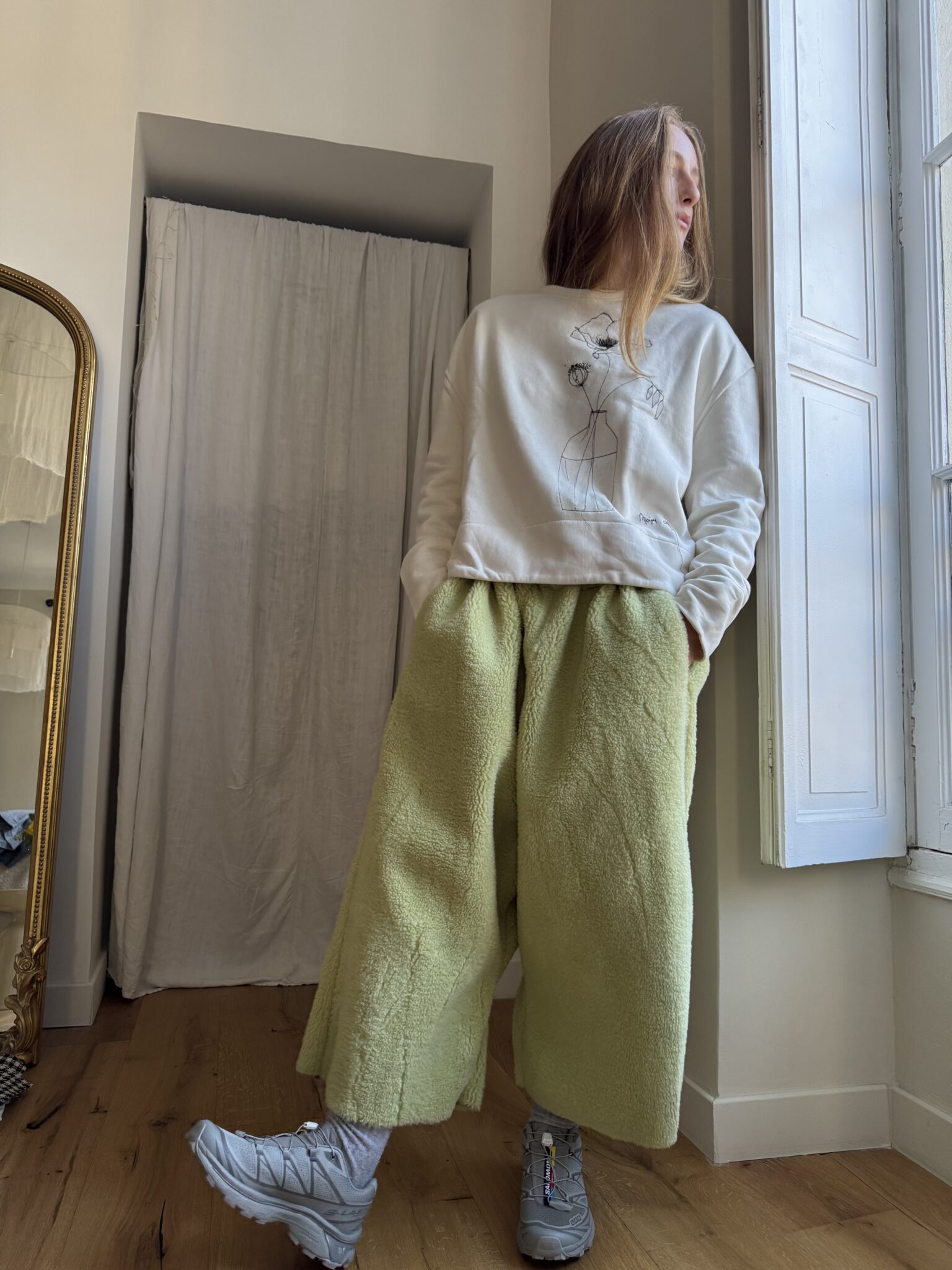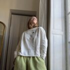 Sweat-shirt en coton molleton écru brodé à la main. Une coupe minimaliste et intemporelle. PIÈCE UNIQUE