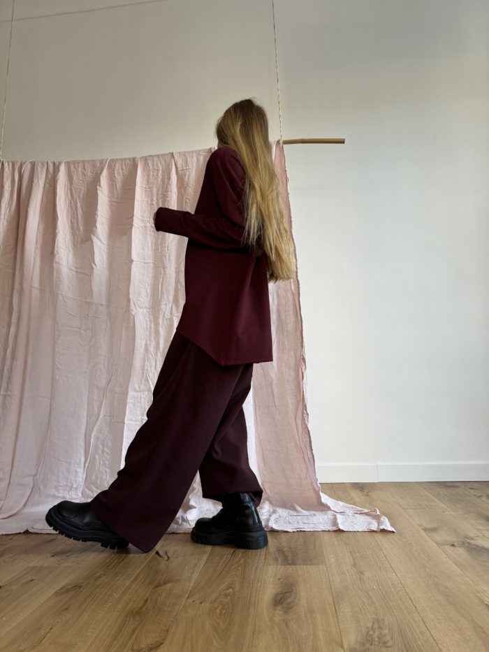 Sweat-shirt en coton French Terry bordeaux, envers gratté. Col rond, bas de sweat-shirt arrondi. Une coupe oversize, minimaliste et intemporelle. Petite édition.