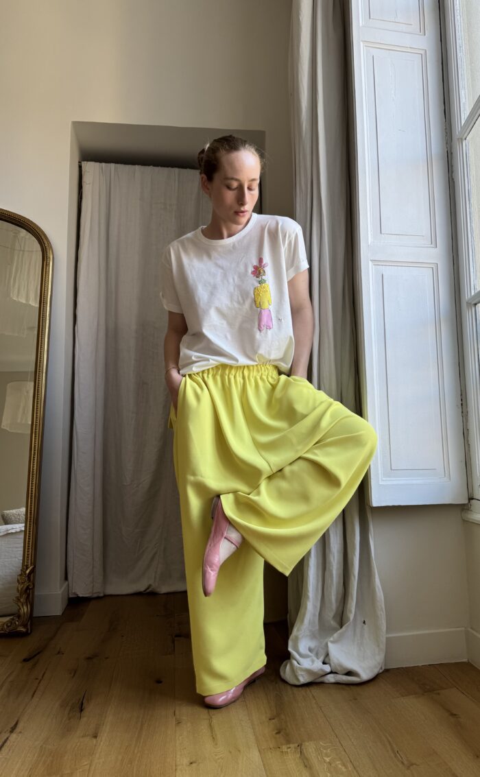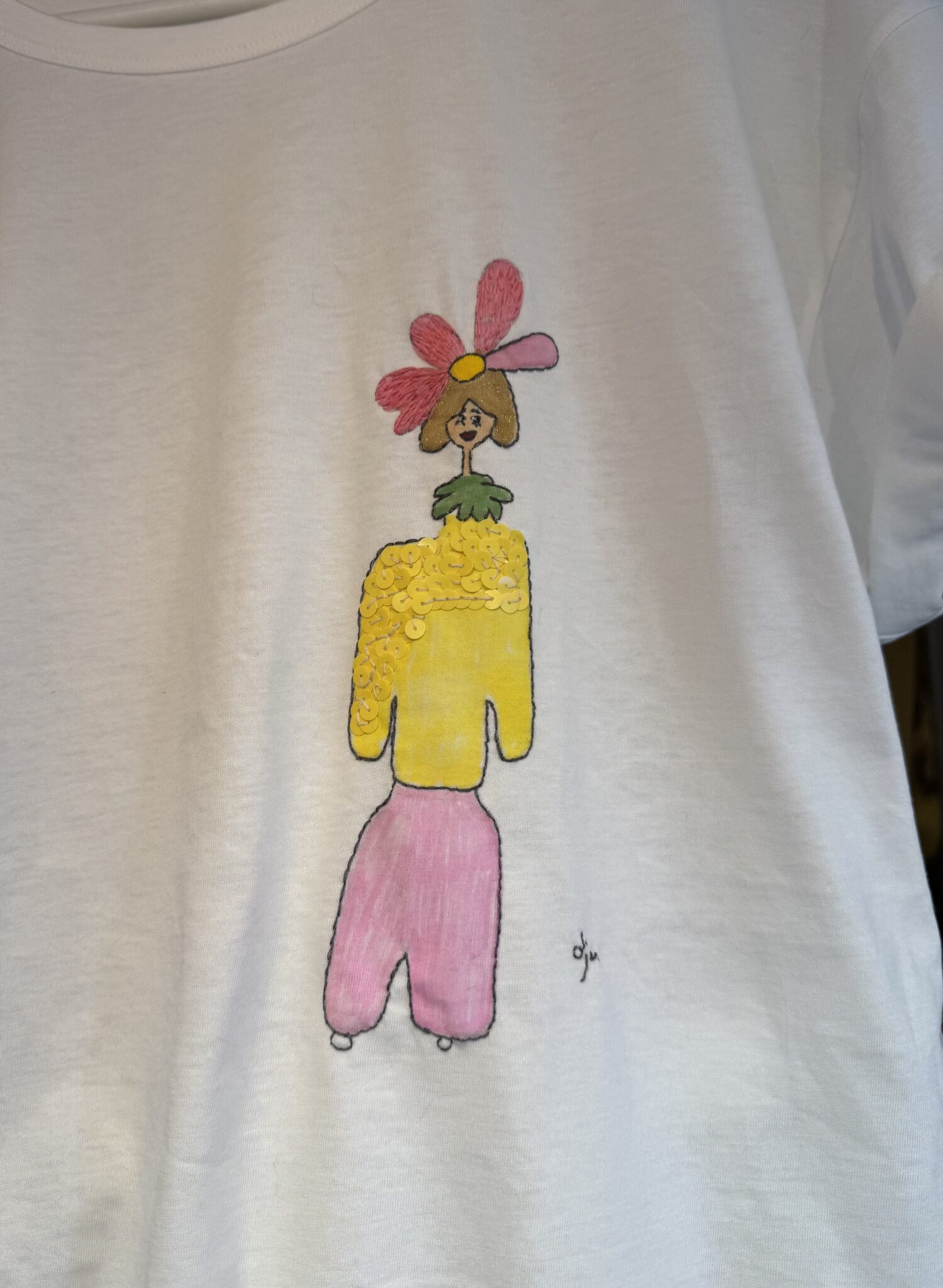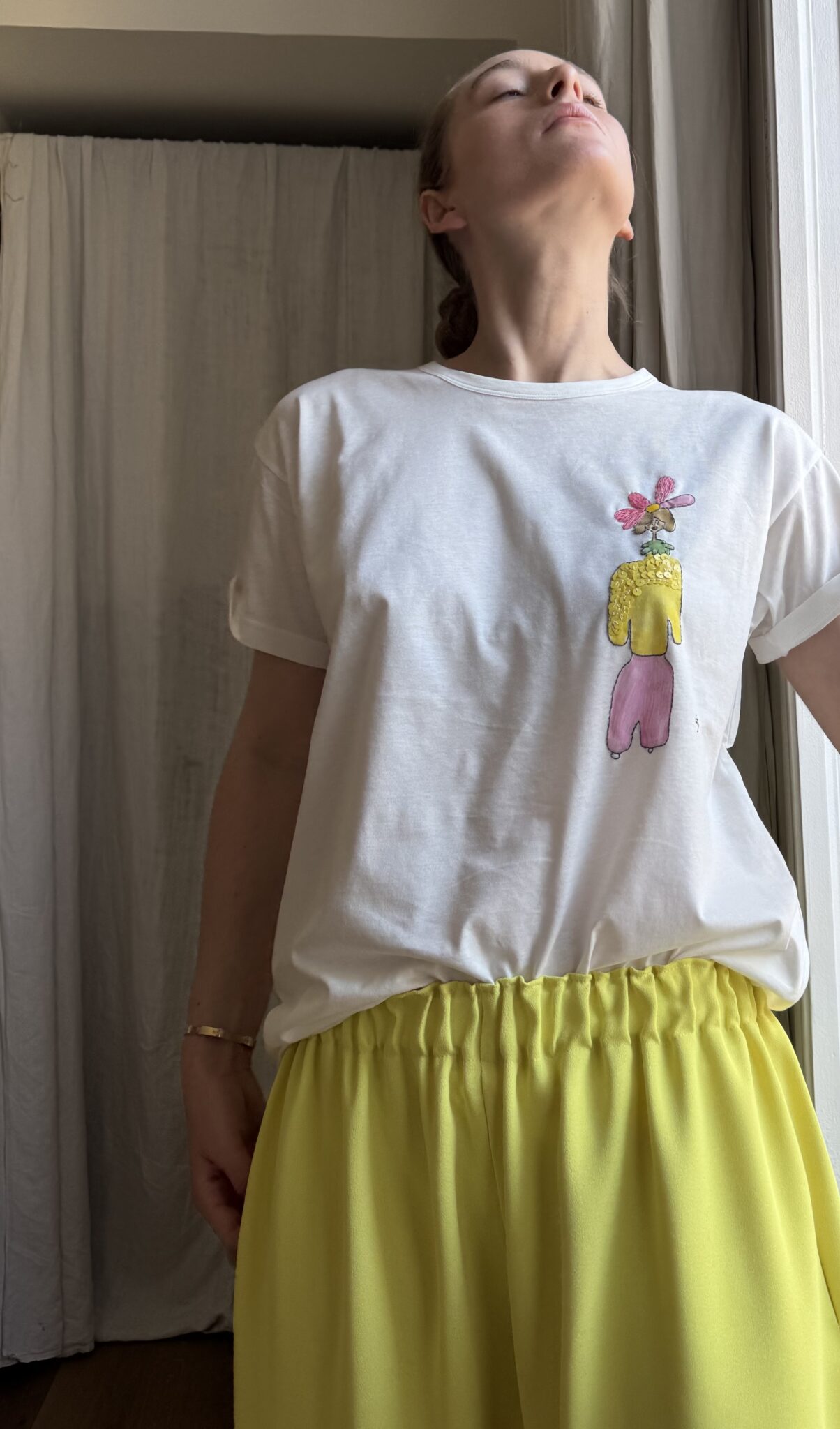 Teeshirt en coton biologique peint & brodé main. Coupe unisexe, col rond, manches courtes. Broderie & peinture poétique. PIÈCE UNIQUE