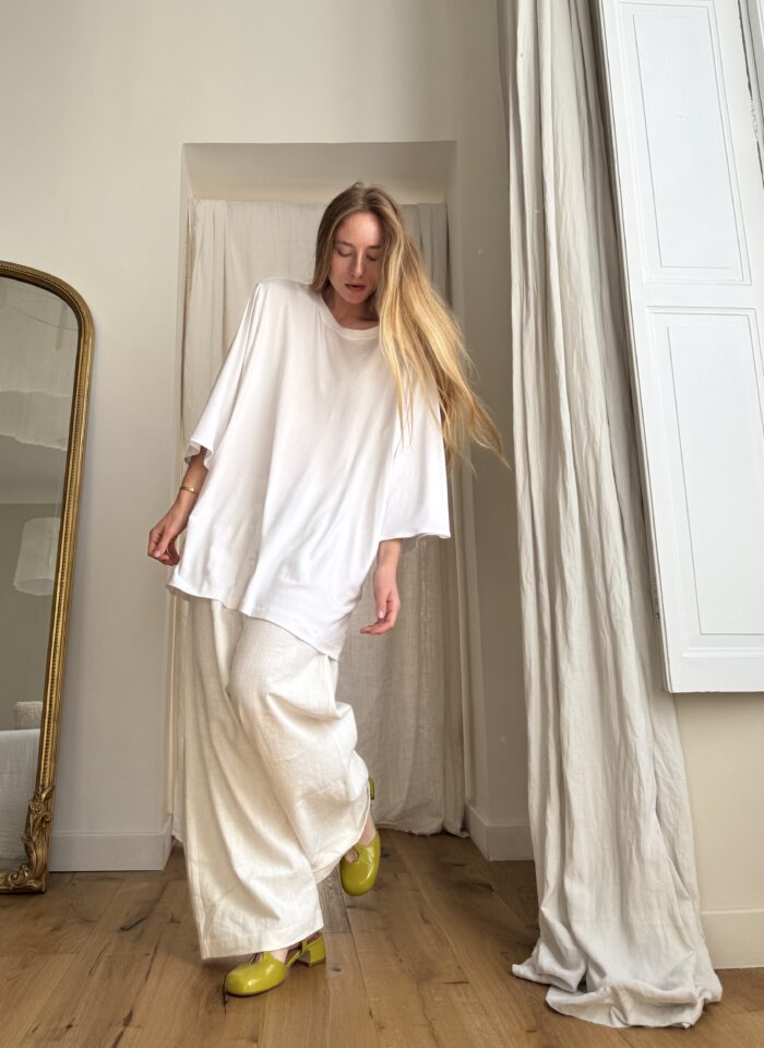 Teeshirt long manches 3/4, col rond, coupe minimaliste et intemporelle. Tissu coton & viscose, doux. Petite édition.