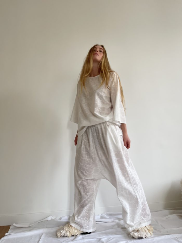 Teeshirt « LUCIEN » en broderie anglaise. Une coupe loose et minimaliste pour un teeshirt élégant et stylé. PIÈCE UNIQUE