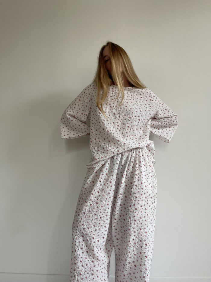 Teeshirt « LUCIEN » dans un sublime coton gaufré fleuri. Une coupe loose et minimaliste pour un teeshirt élégant et stylé. PIÈCE UNIQUE