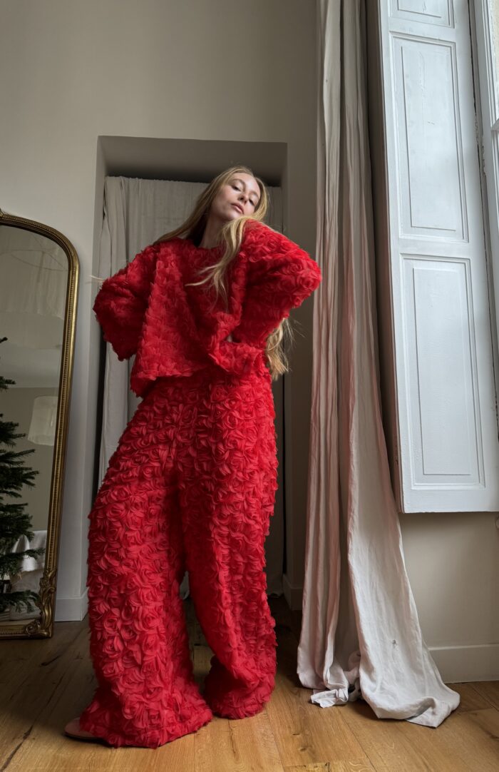 Teeshirt « LUCIEN » dans un sublime tulle parsemé de roses rouges. Une coupe loose et minimaliste, style japonisant, manches 3/4, col rond, une pièce stylée et unique.