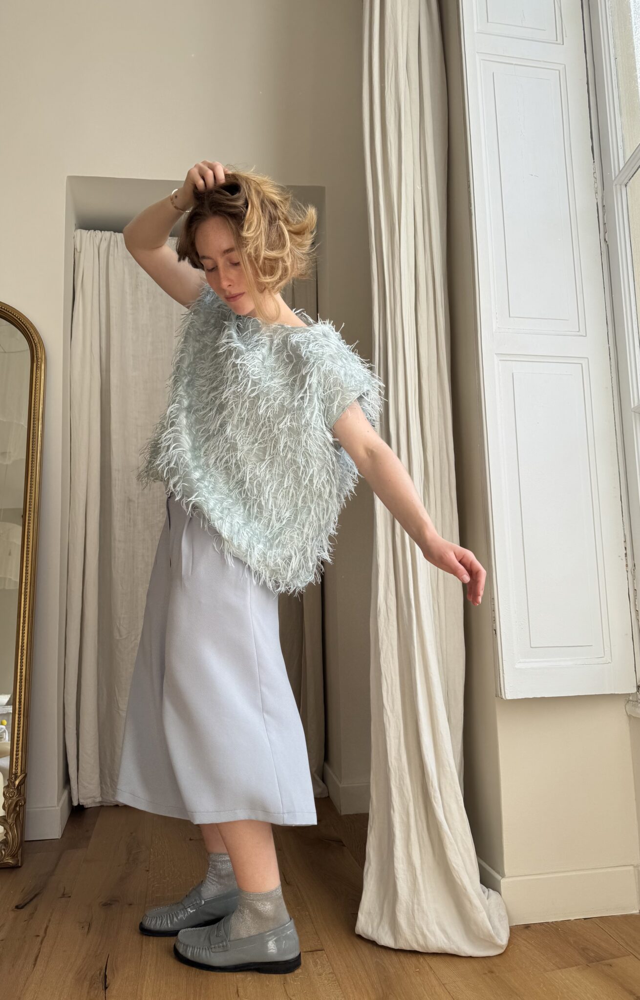 Teeshirt « LUCIEN » sans manches bleu ciel. Coupe minimaliste, col rond.