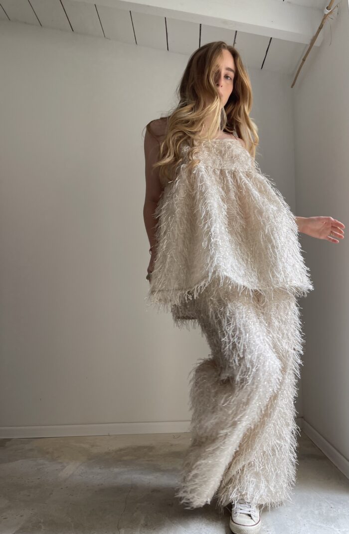 Top « Justine » dans un magnifique tissu scintillant ! Fines bretelles « queues de rat », une coupe minimaliste. PIÈCE UNIQUE !