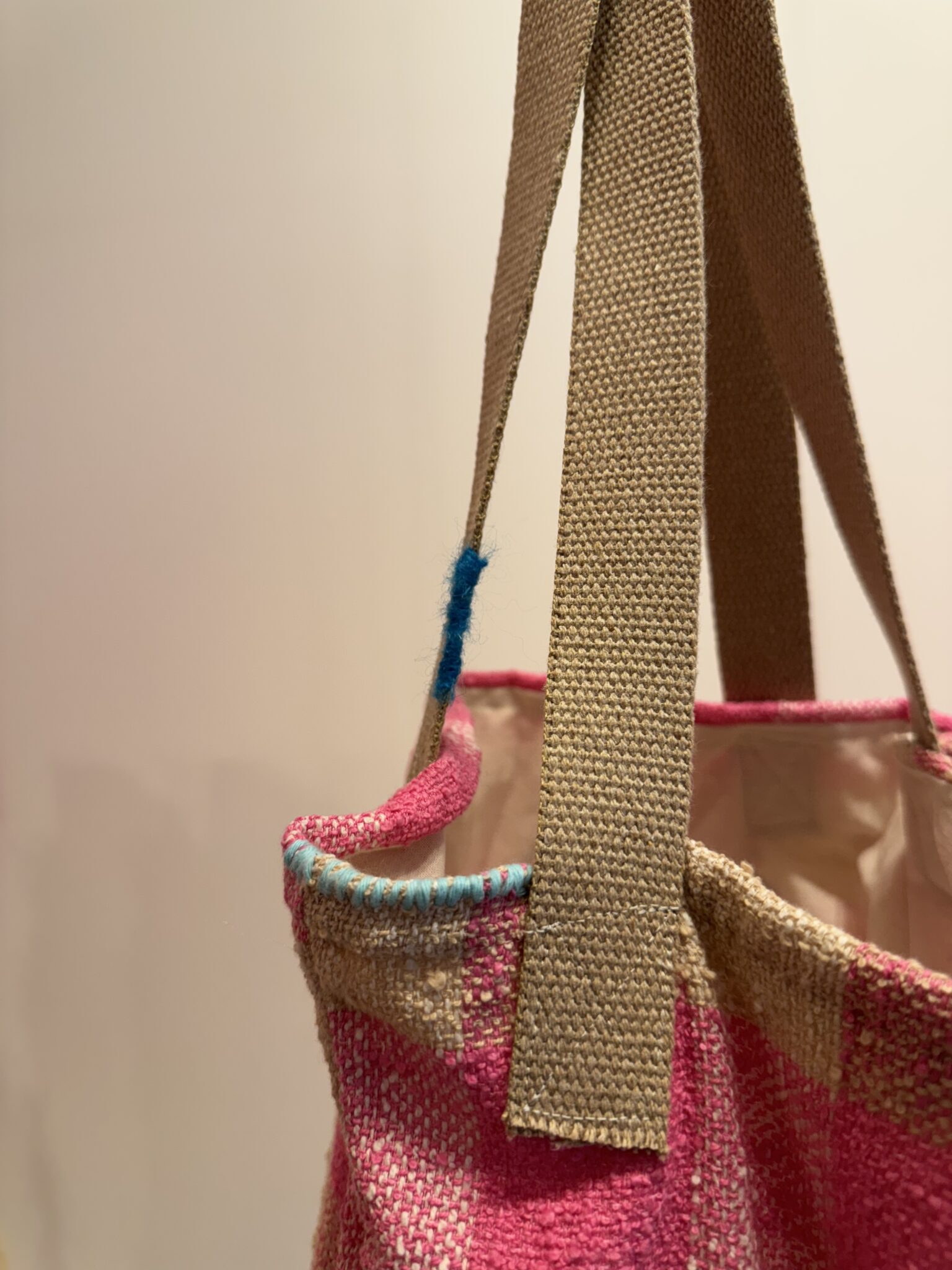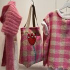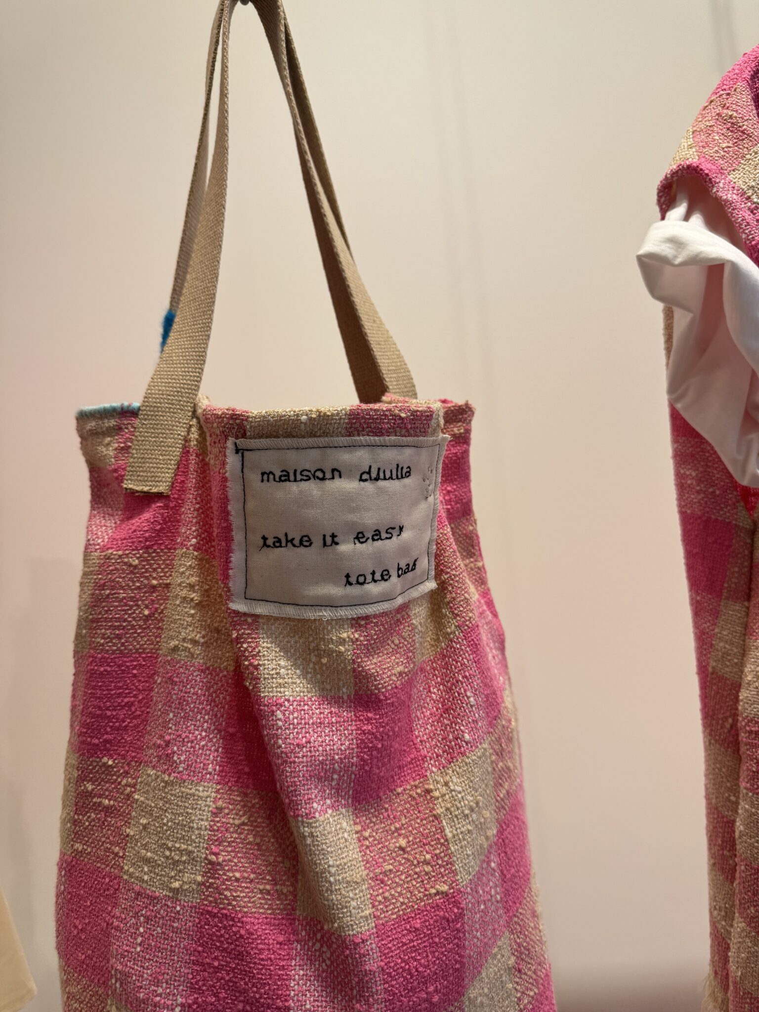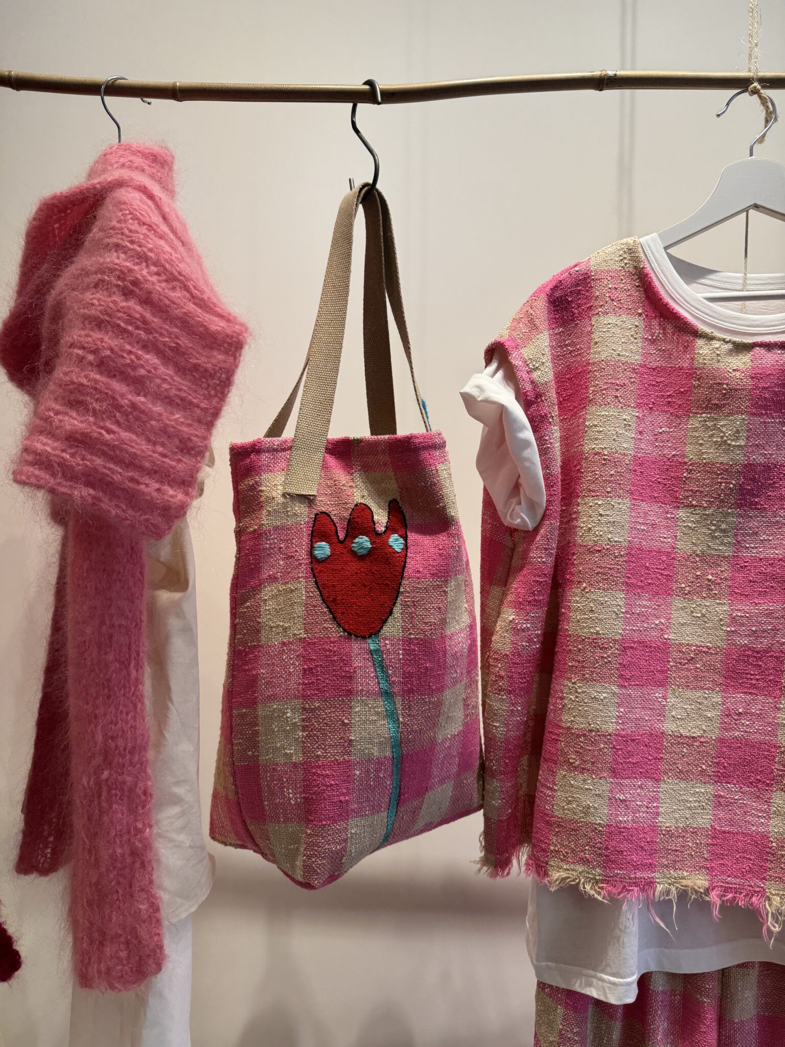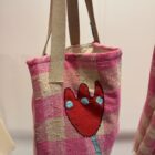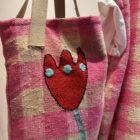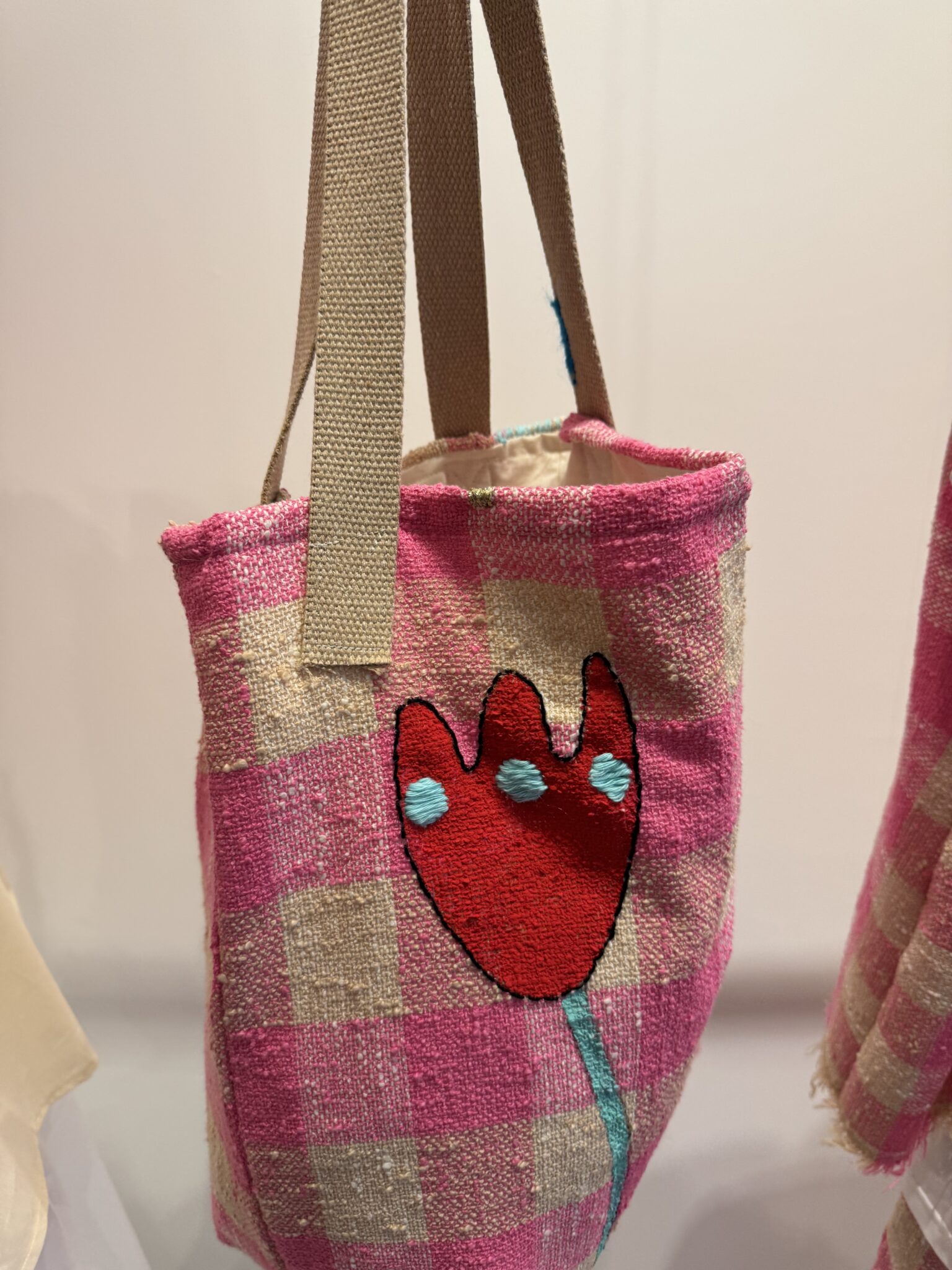 Tote bag en tweed 100% coton imprimé carreaux vichy rose, brodé main. Fond de sac en coton écru. Anses du sac en coton. Tote bag poétique. PIÈCE UNIQUE