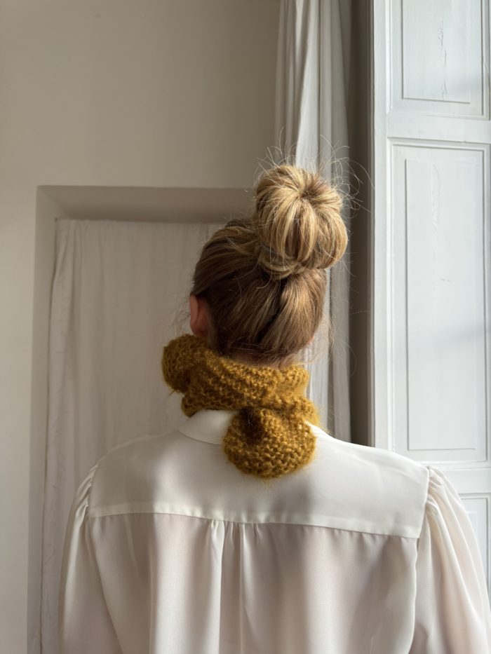Tour de cou tricoté main en kid mohair coloris cuivre. Doux tel un câlin. PIÈCE UNIQUE
