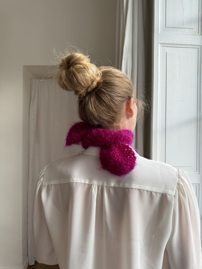 Tour de cou tricoté main en kid mohair coloris prune. Doux tel un câlin. PIÈCE UNIQUE