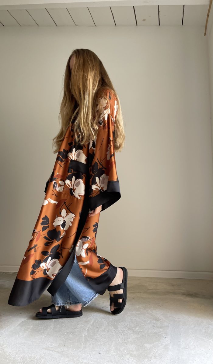 Veste Kimono fleurie, entièrement soulignée d’un crêpe de viscose envers satin noir, lui donnant caractère et élégance. Ceinture & poches plaquées. Une coupe loose & minimaliste. La pièce tendance et originale à avoir dans son dressing ! PIÈCE UNIQUEÂ
